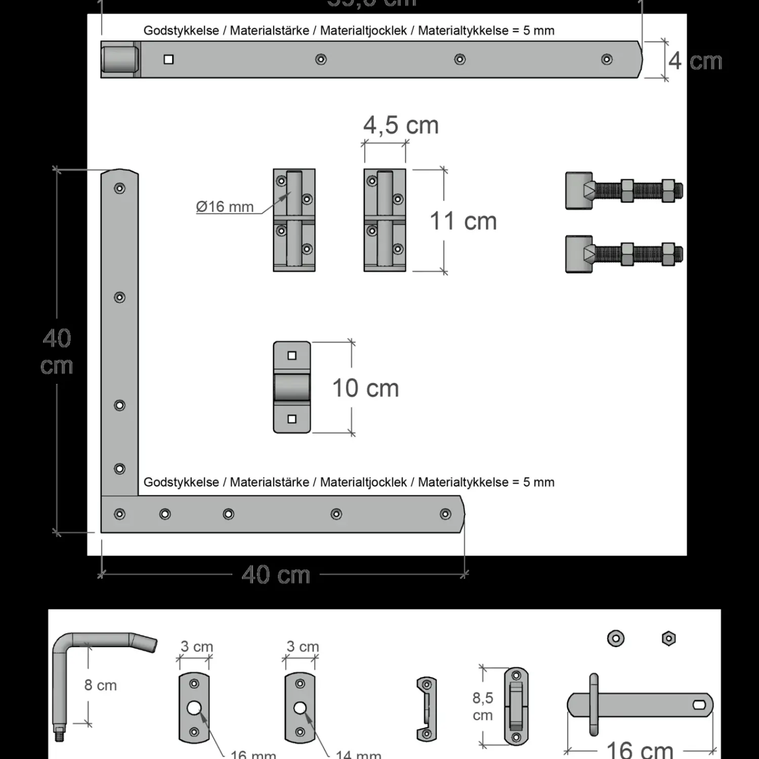 - Vær opmærksom på at, modulet sælges inkl. lågebeslag, bolte og skruer til montering af havelågen.