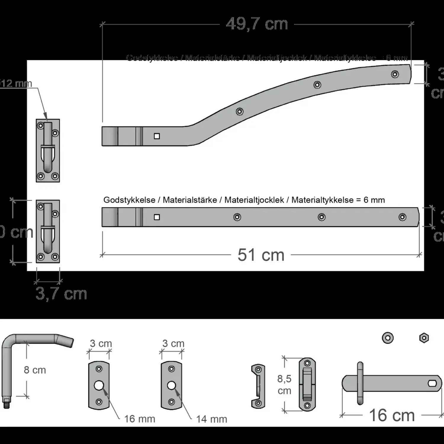 - Vær opmærksom på at, modulet er venstrehængt og sælges inkl. lågebeslag, bolte og skruer til montering af havelågen.