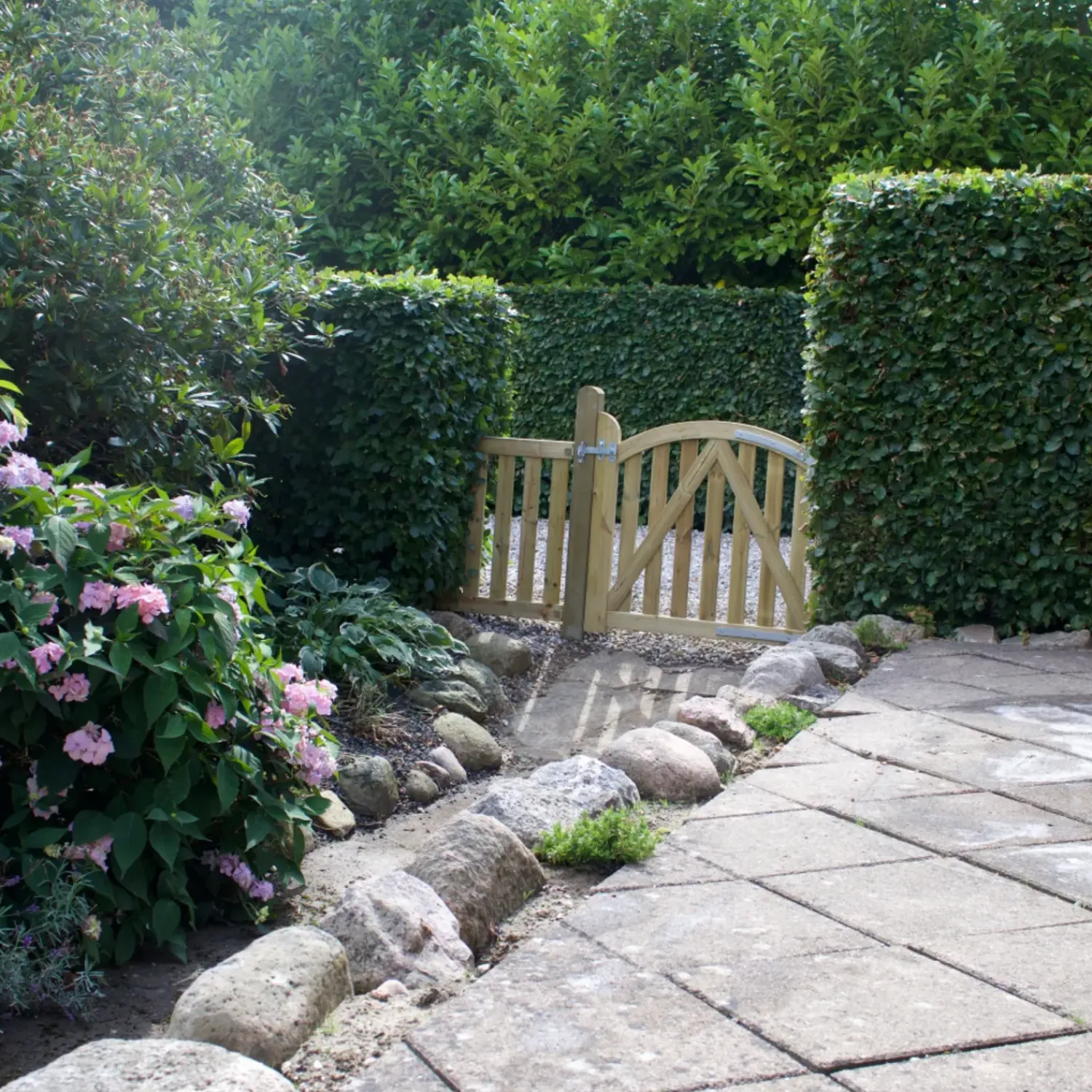 Pryd forhaven med Plus Ligno elegante havelåge, der giver et roligt og enkelt udtryk. Indram haven eller indkørslen med Plus Ligno havehegn og låge, og lad børnene og hunden boltre sig et trygt sted.