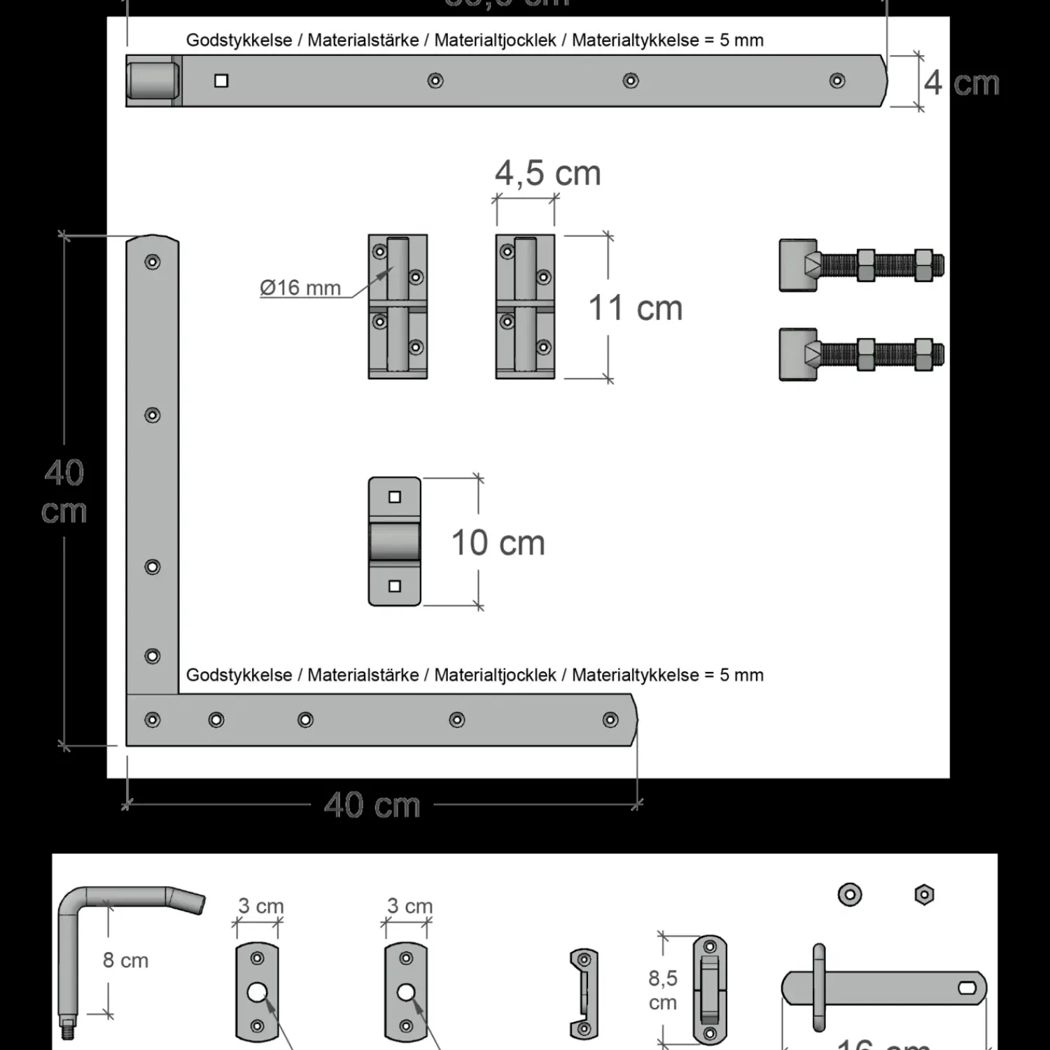 - Vær opmærksom på at, modulet sælges inkl. lågebeslag, bolte og skruer til montering af havelågen.