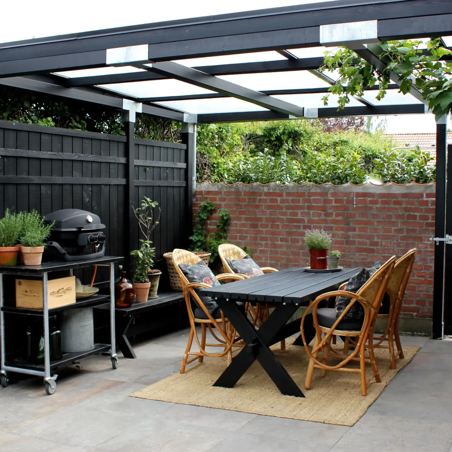 - Vær opmærksom på at, modulet sælges separat. Husk at tilkøbe stolper, beslag og skruer til montering af havelågen.