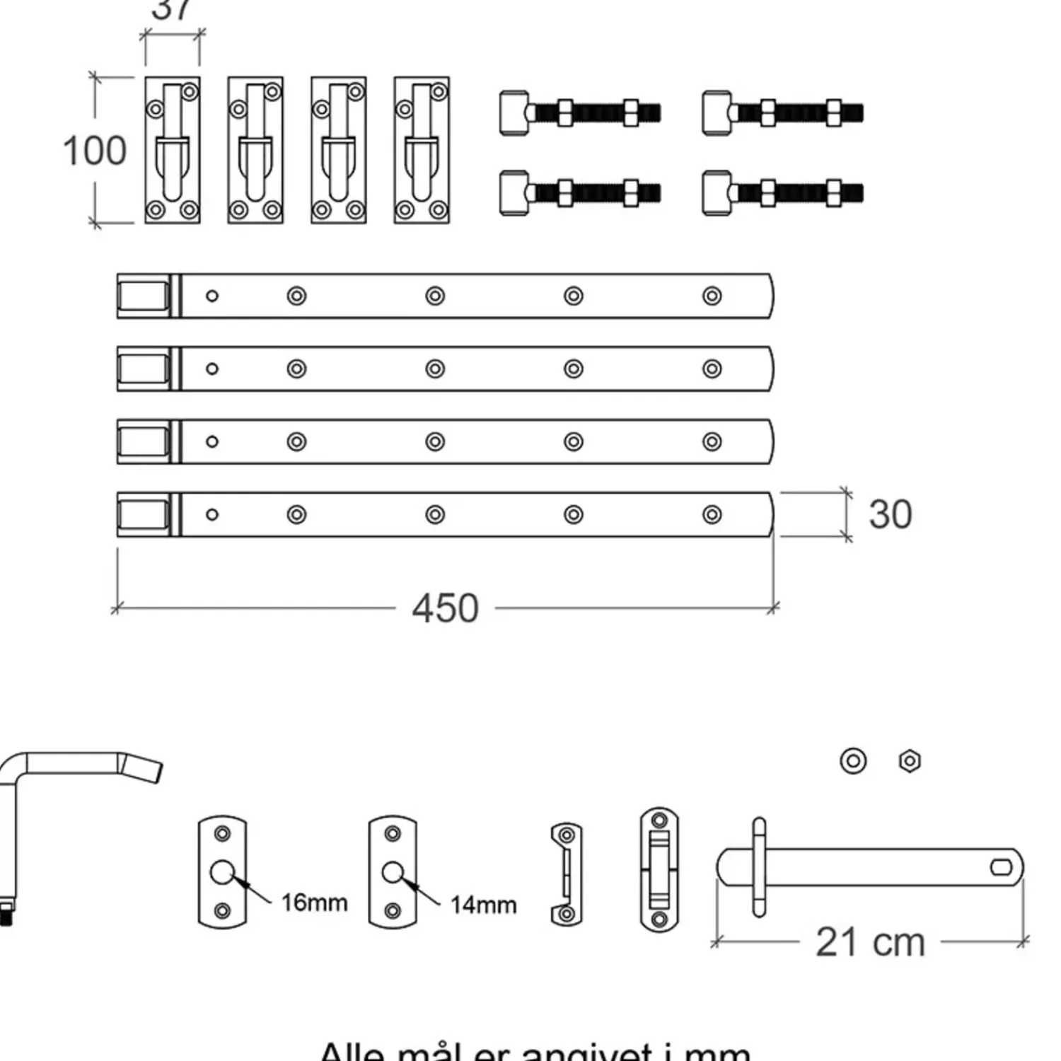 - Vær opmærksom på at, modulet sælges separat. Husk at tilkøbe stolper, beslag og skruer til montering af havelågen
