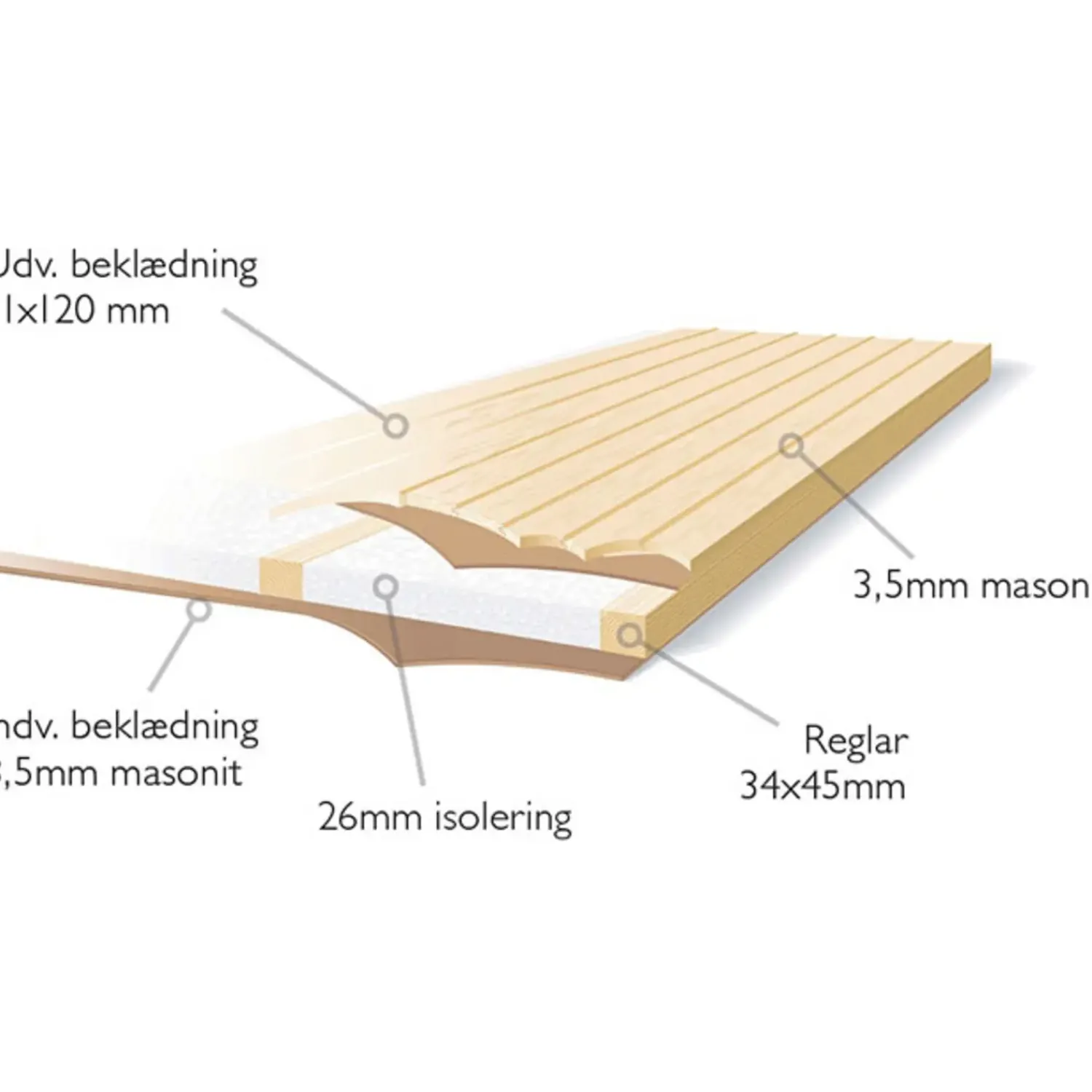 Kan anvendes til uopvarmede rum, f.eks. redskabsrum /anneks med ingen eller begrænset temperaturforskel mellem inde og ude max. 10 gr. forskel (U-værdi 1,5)