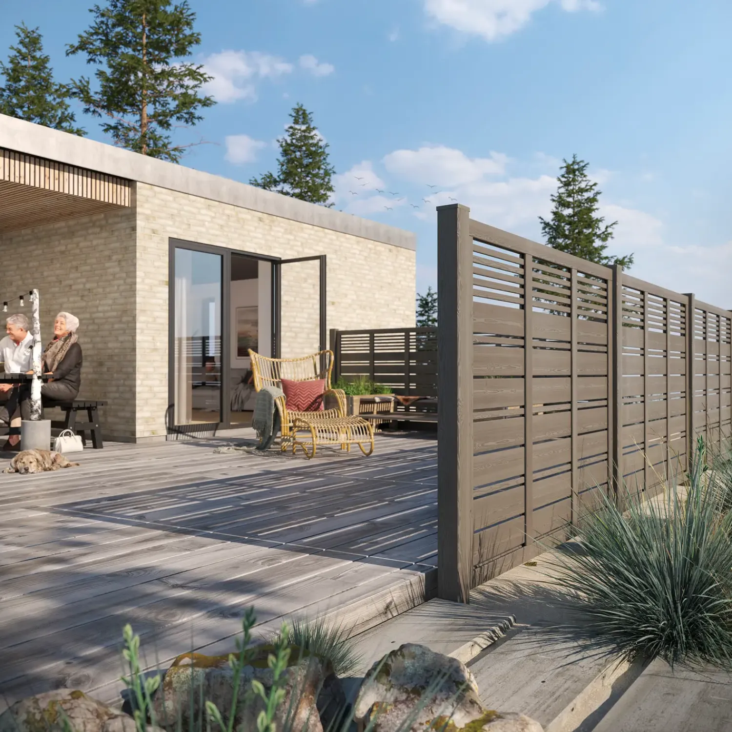Designet er med til at skabe et tæt udtryk, som er særdeles velegnet til afskærmning og rumdeling i villahaver. De små sprækker i hegnet giver en fornemmelse af åbenhed på begge sider af hegnet. Kombinationen af de smalle lameller og bredere stave etablerer nemlig et mere privat rum, hvor du stadig kan følge lidt med i, hvad der sker på den anden side af hegnet.