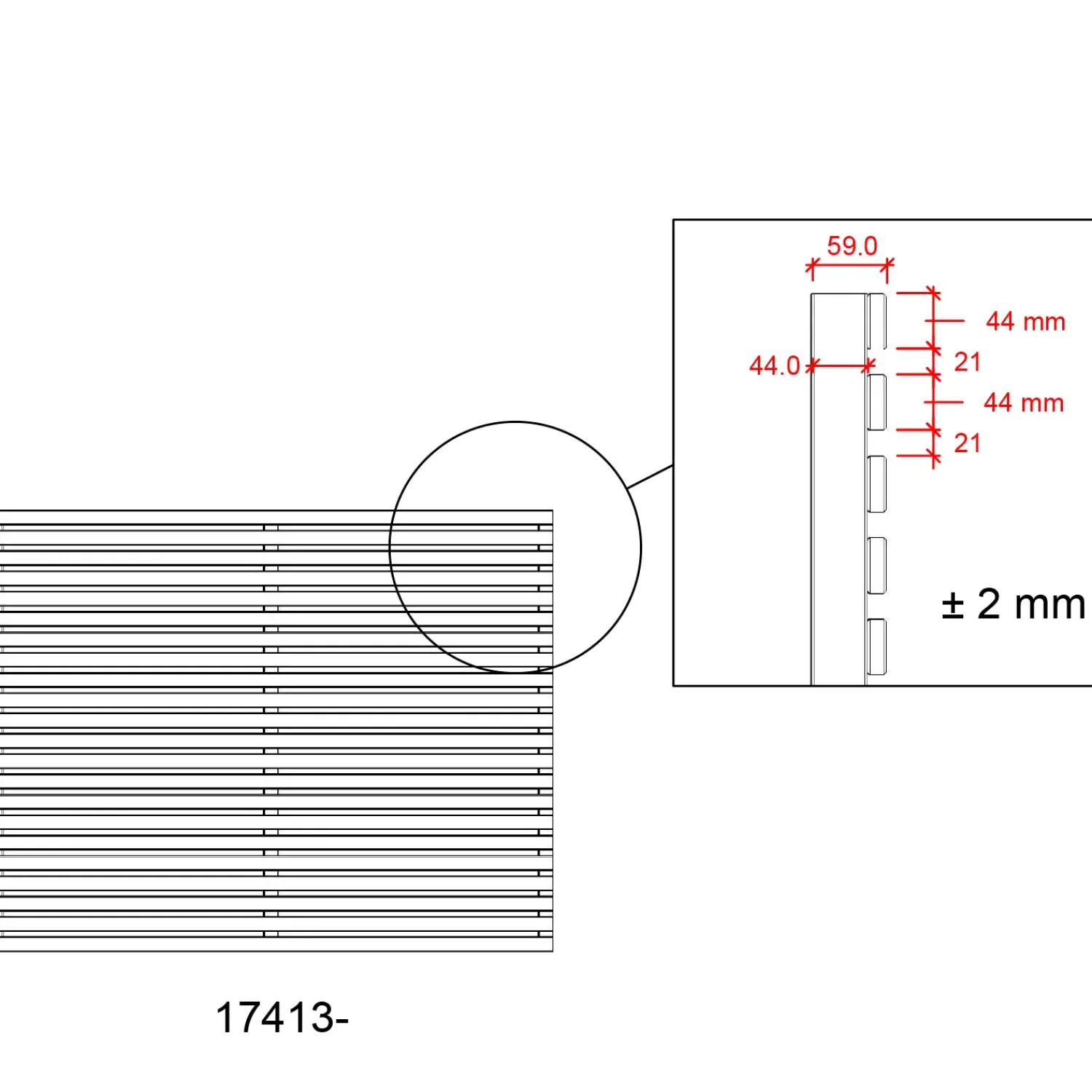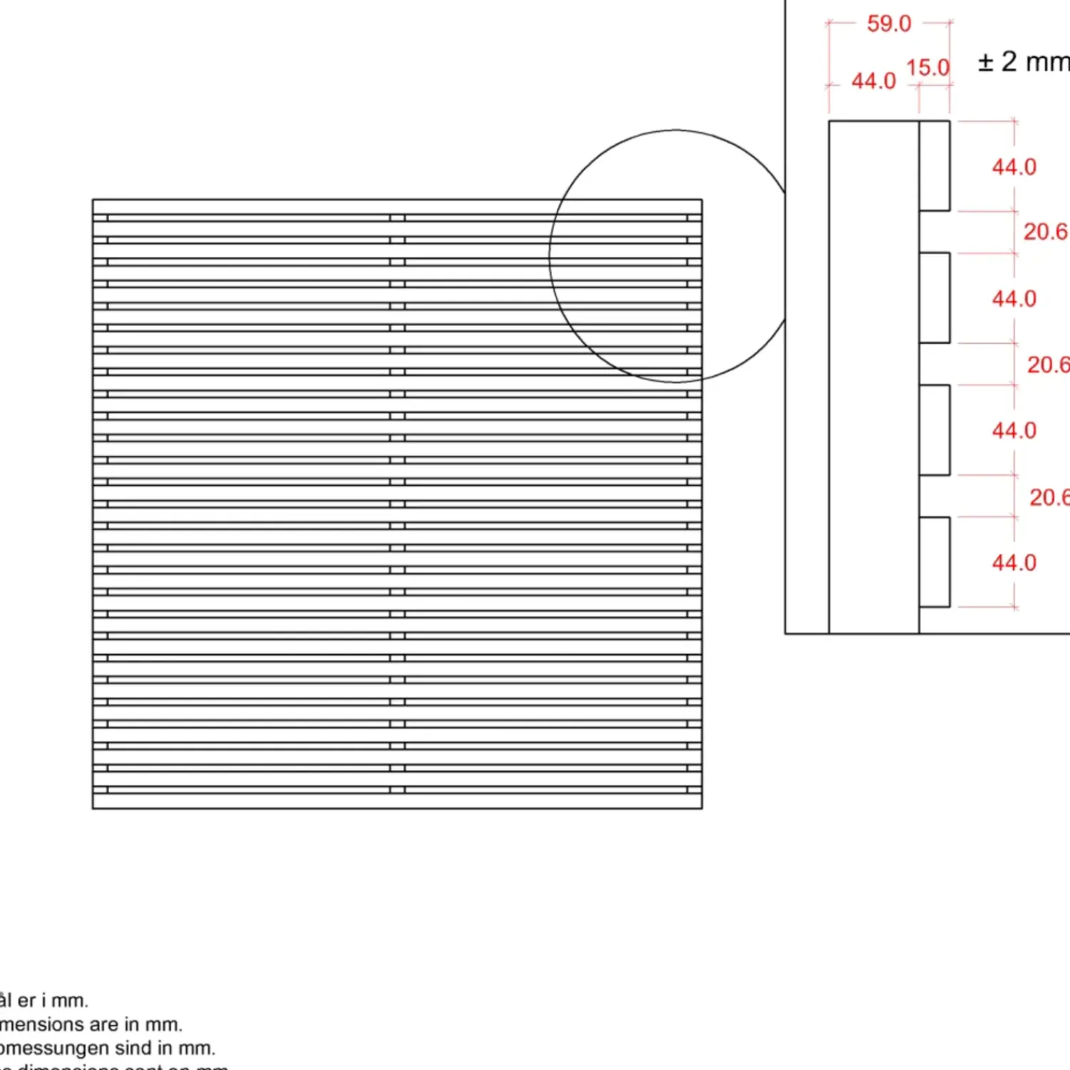 De smalle lameller virker kamouflerende, så du blot kan ane en smule af omgivelserne gennem hegnet. Ønsker du at lukke yderligere af, kan du nemt lade planterne klatre. Brug lamellerne til kroge, plantekasser og diverse redskaber, eller lad dem stå, som de er og luk lyset ind med smukke skygger og lysspil på terrassen.