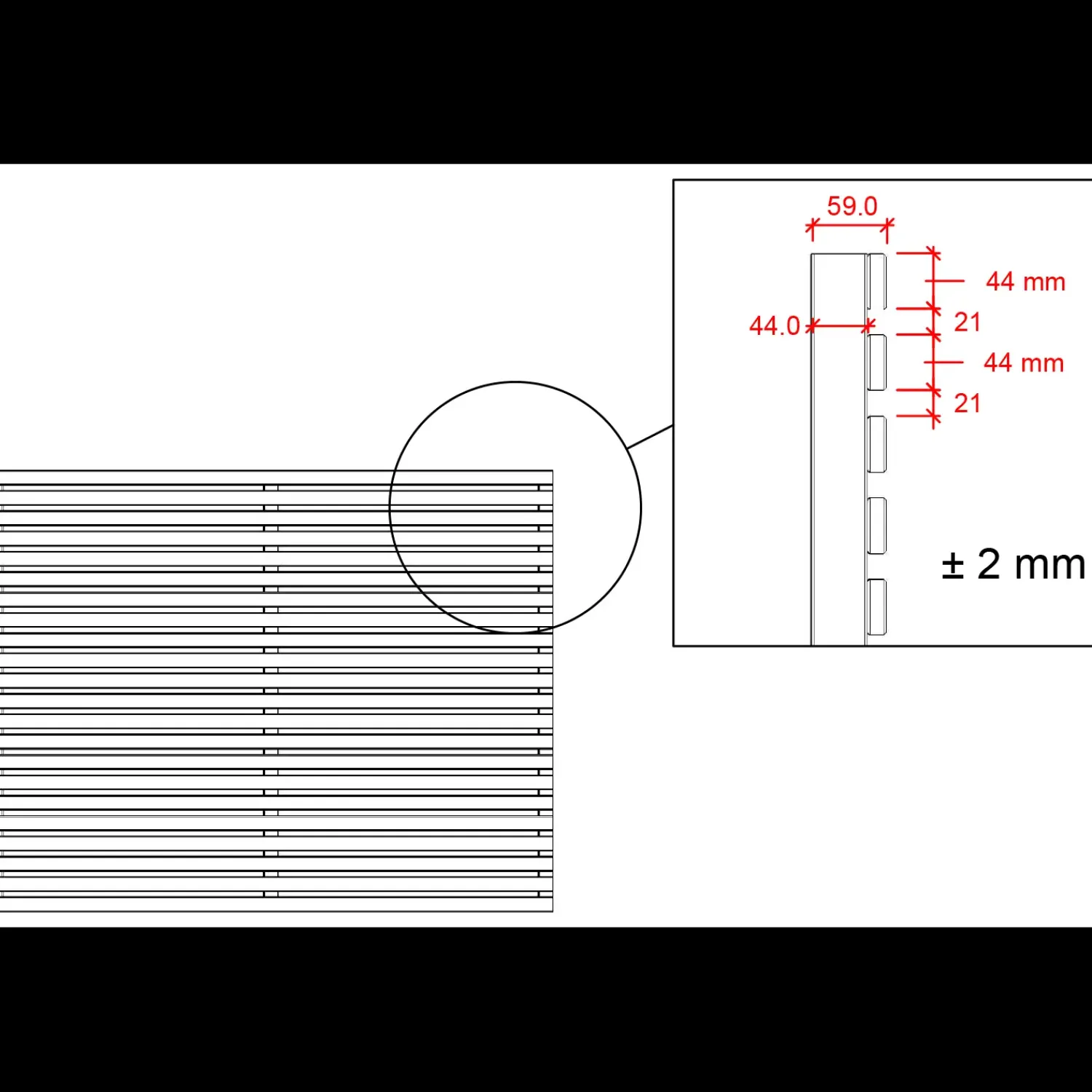 - Afstand mellem lameller: 21 mm