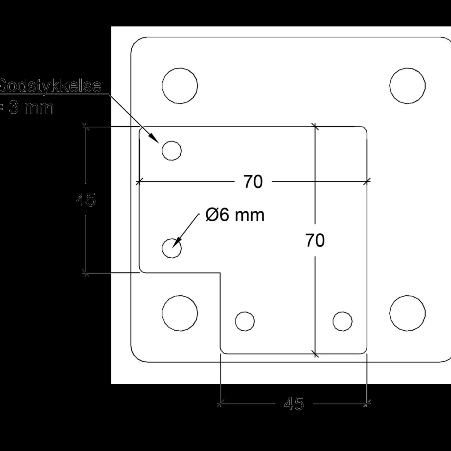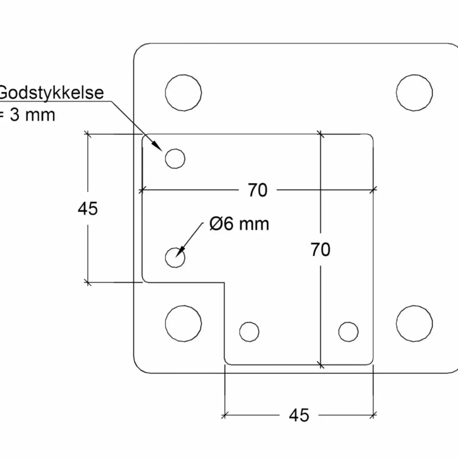 - Flange: bredde 45 mm – længde 70 mm – tykkelse 3 mm