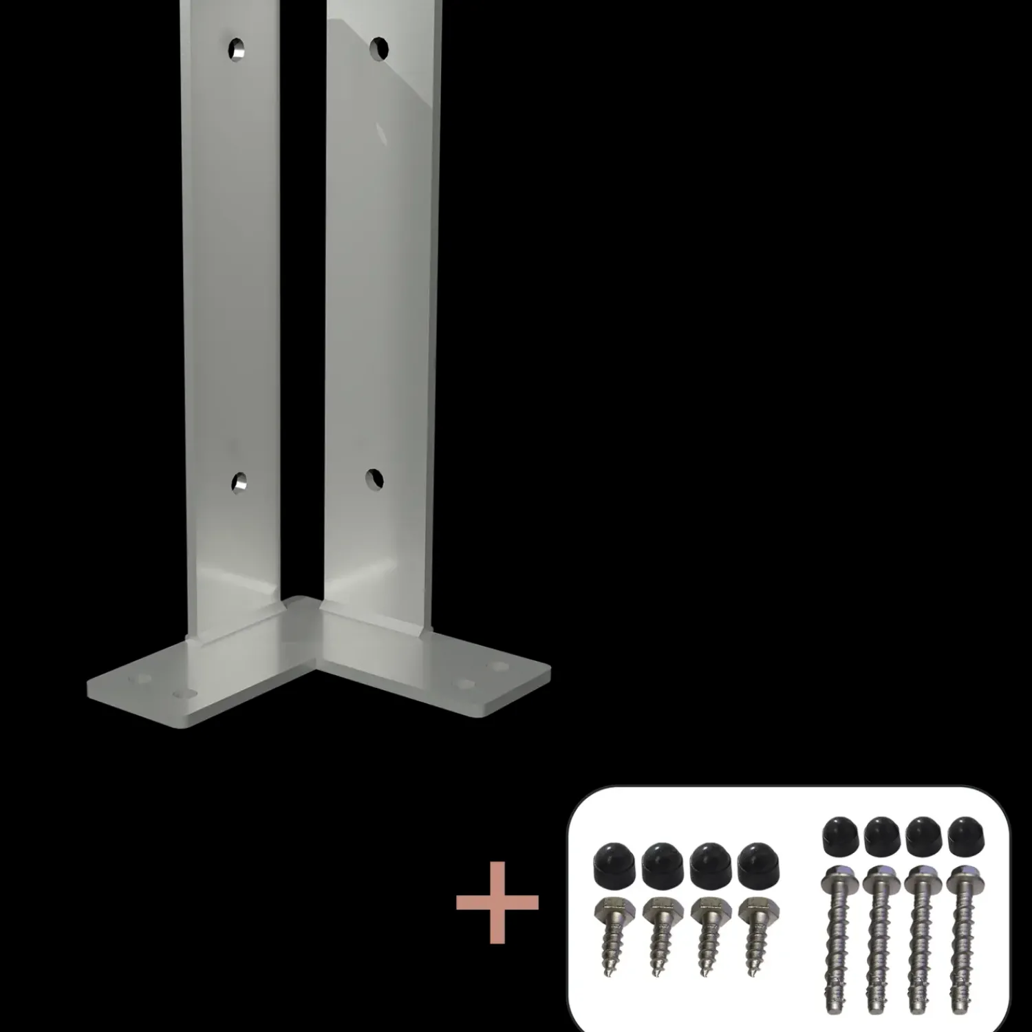 Varenr. består af:Hjørne Stolpefod til fundament inkl. franske skruer, bolte og møtrikhætter.