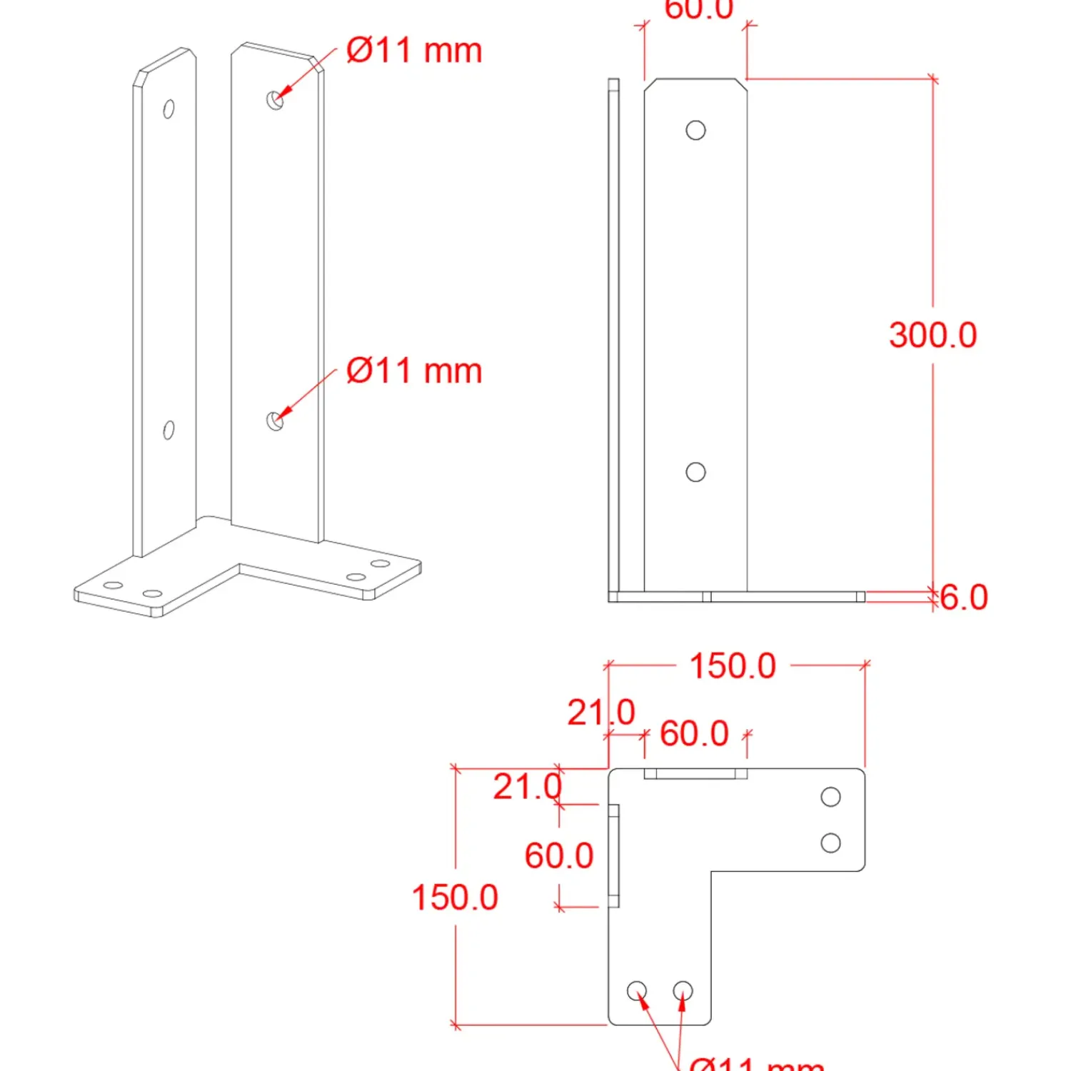 Hjørne Stolpefod 9x9x30 cm til fundament – m/skruer – 14580-1