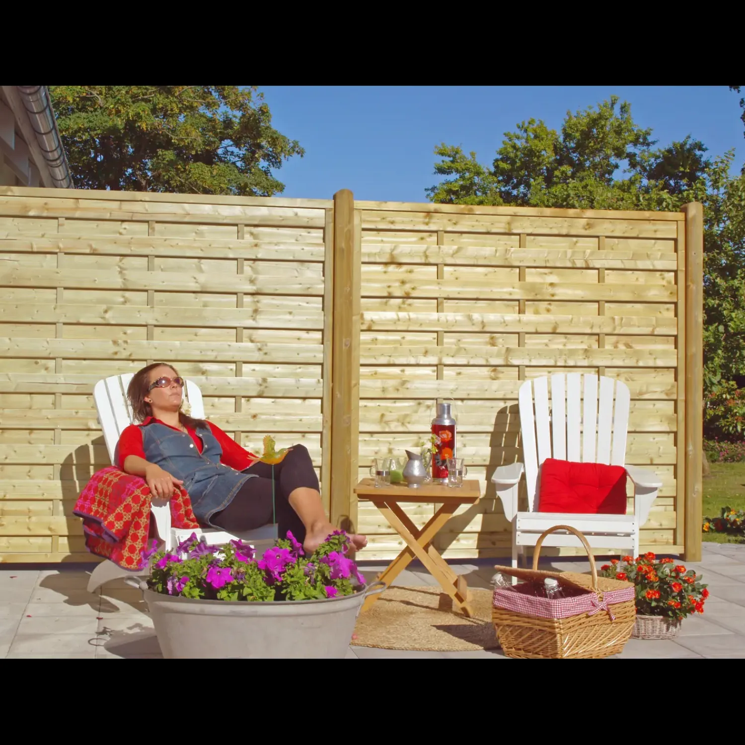 - Vær opmærksom på at, modulet sælges separat. Husk at tilkøbe stolper og skruer til montering af havehegnet.