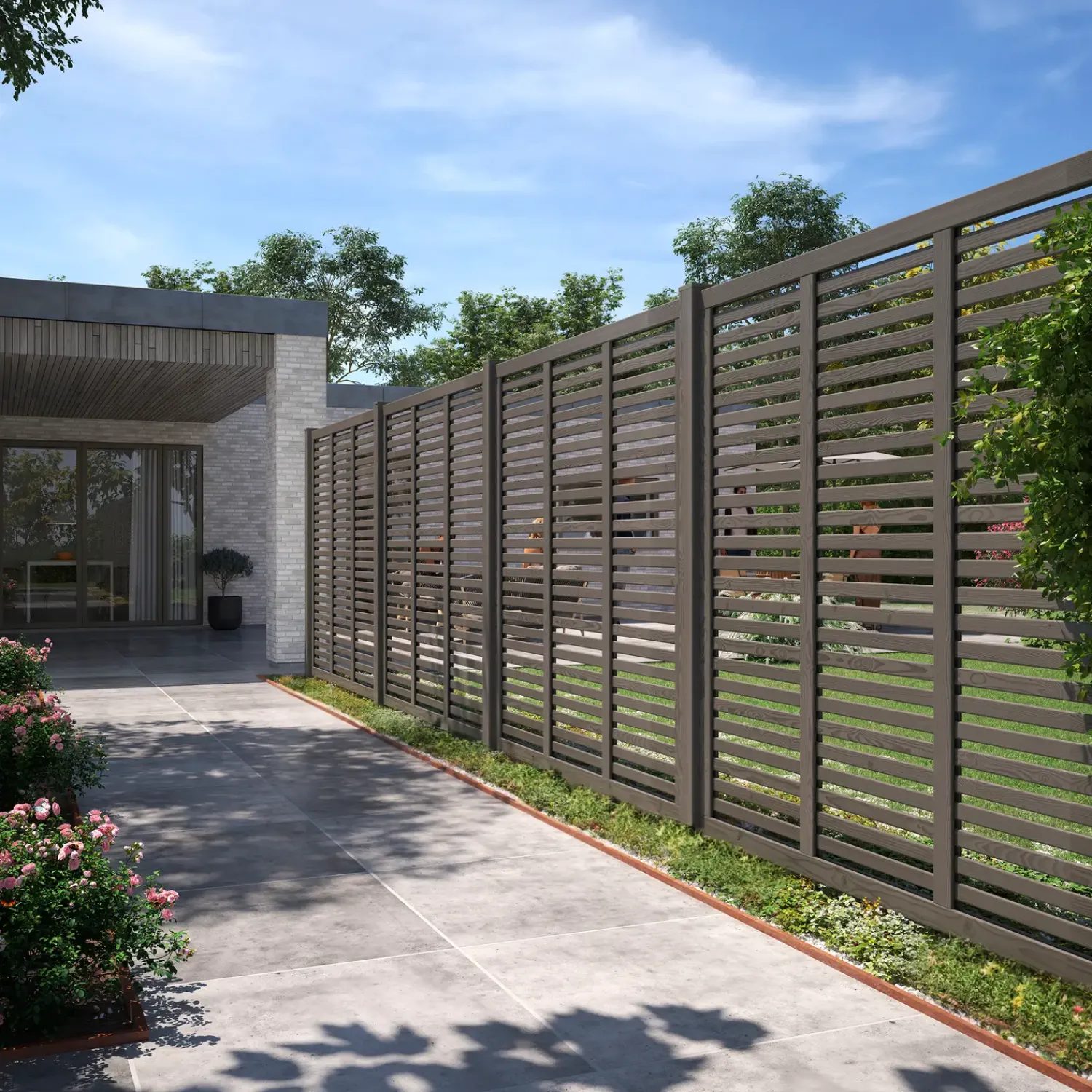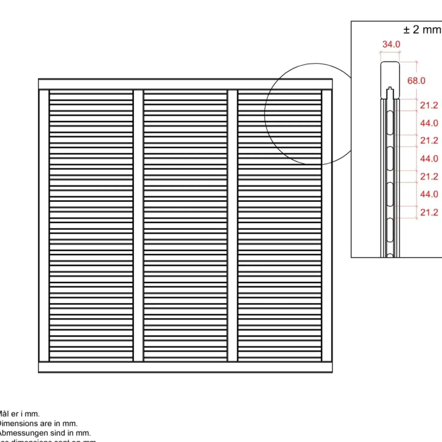 Lad harmonien brede sig i dit uderum med dette smukke listehegn.De smalle lister virker kamuflerende, så indkig begrænses uden at lukke helt. Samtidigt skaber samspillet mellem lodrette og vandrette lister en flot persienneeffekt, der leder tankerne hen på de betagende, japanske foldevægge.Hegnet er helt ens på begge sider og er derfor ideelt som afskærmning, rumdeler eller i et naboskel, hvor hegnet ses fra flere sider.