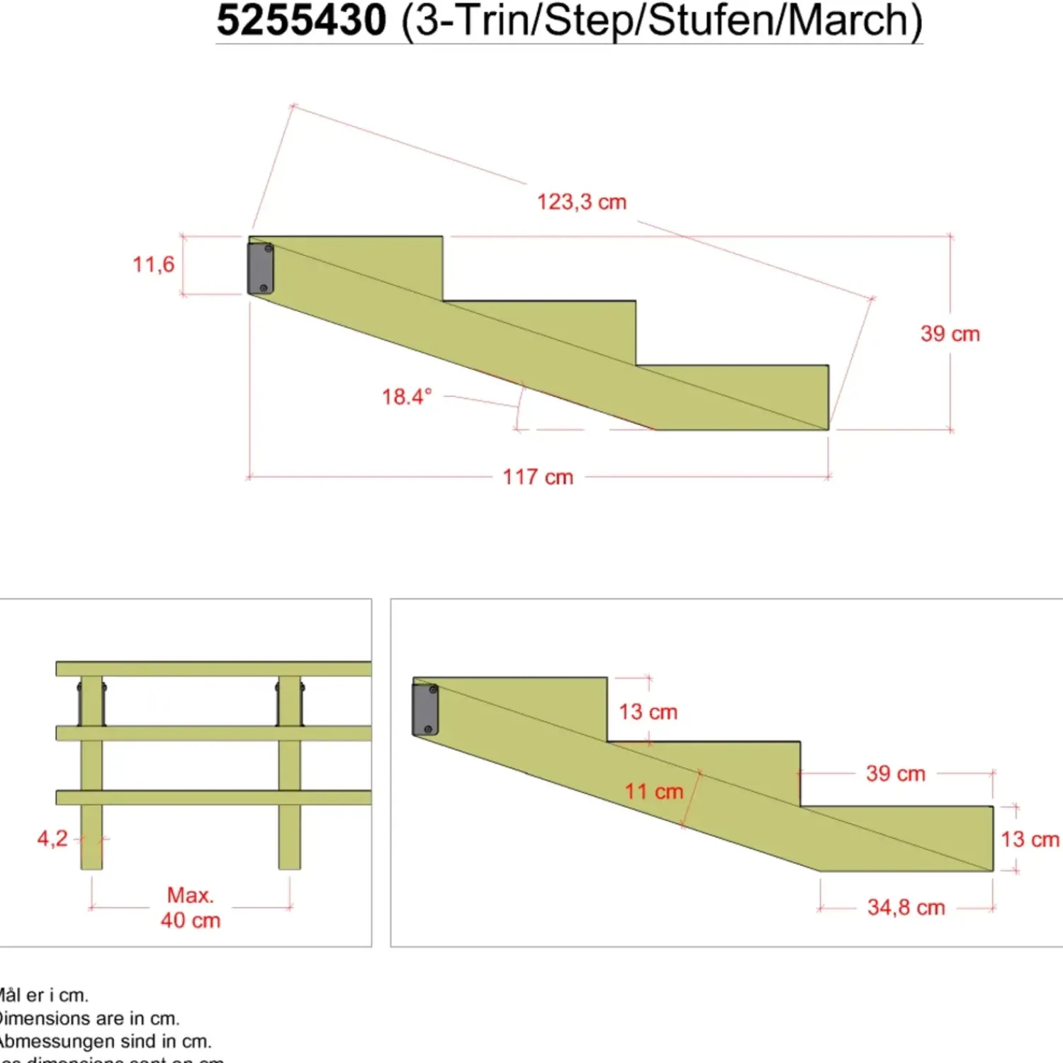 - Tolerance +/÷ 3 mm pr. trin kan forekomme