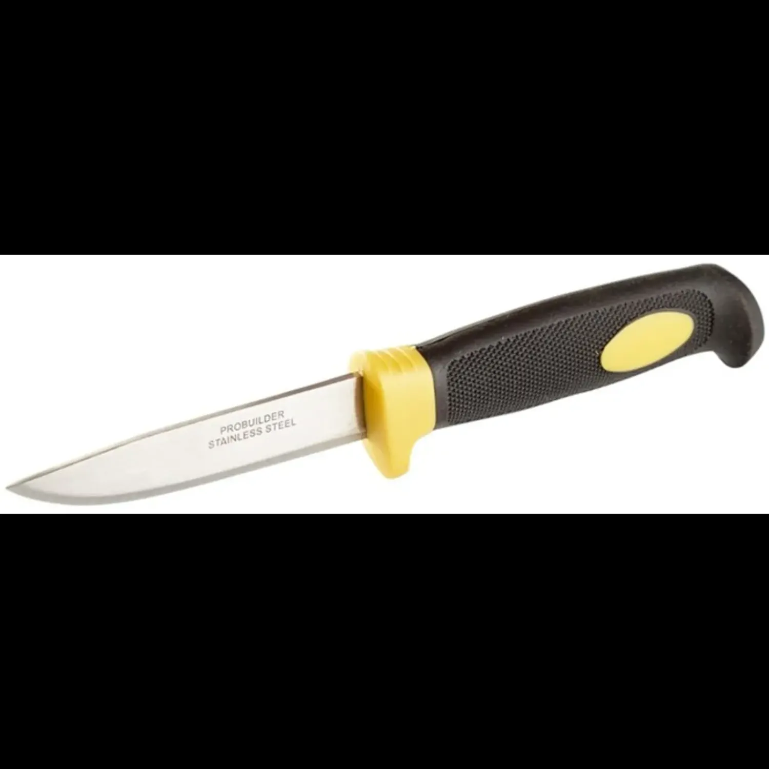 En topkvalitets kniv til bl.a. jagt, fiskeri, arbejde og andet. Den har et gummiskaft med et softgrib og slagfast plastskede.