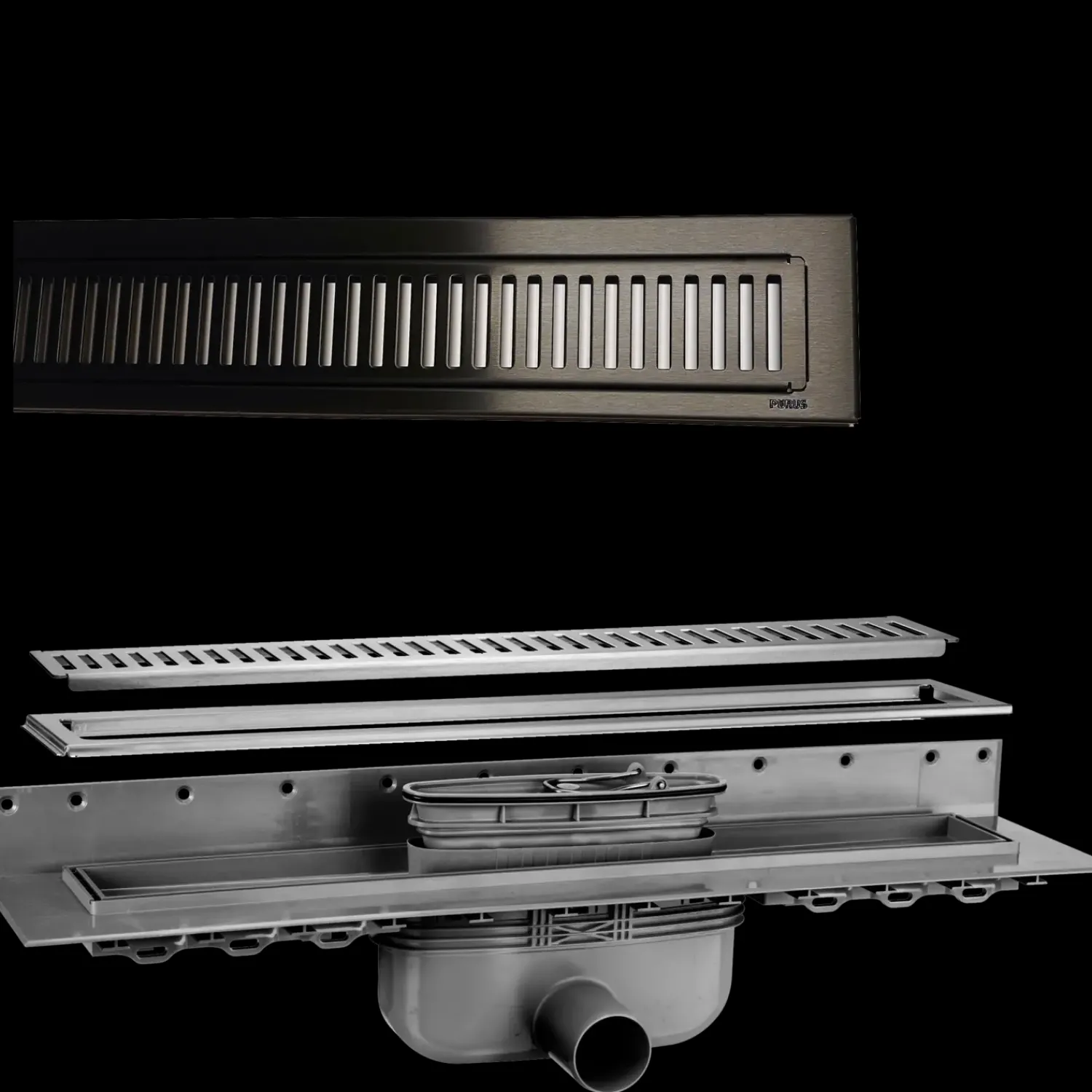 Purus Tilbehør Til Afløb Og Kloak^afløbsrendesæt m/vandlås og rist 1000 mm sort