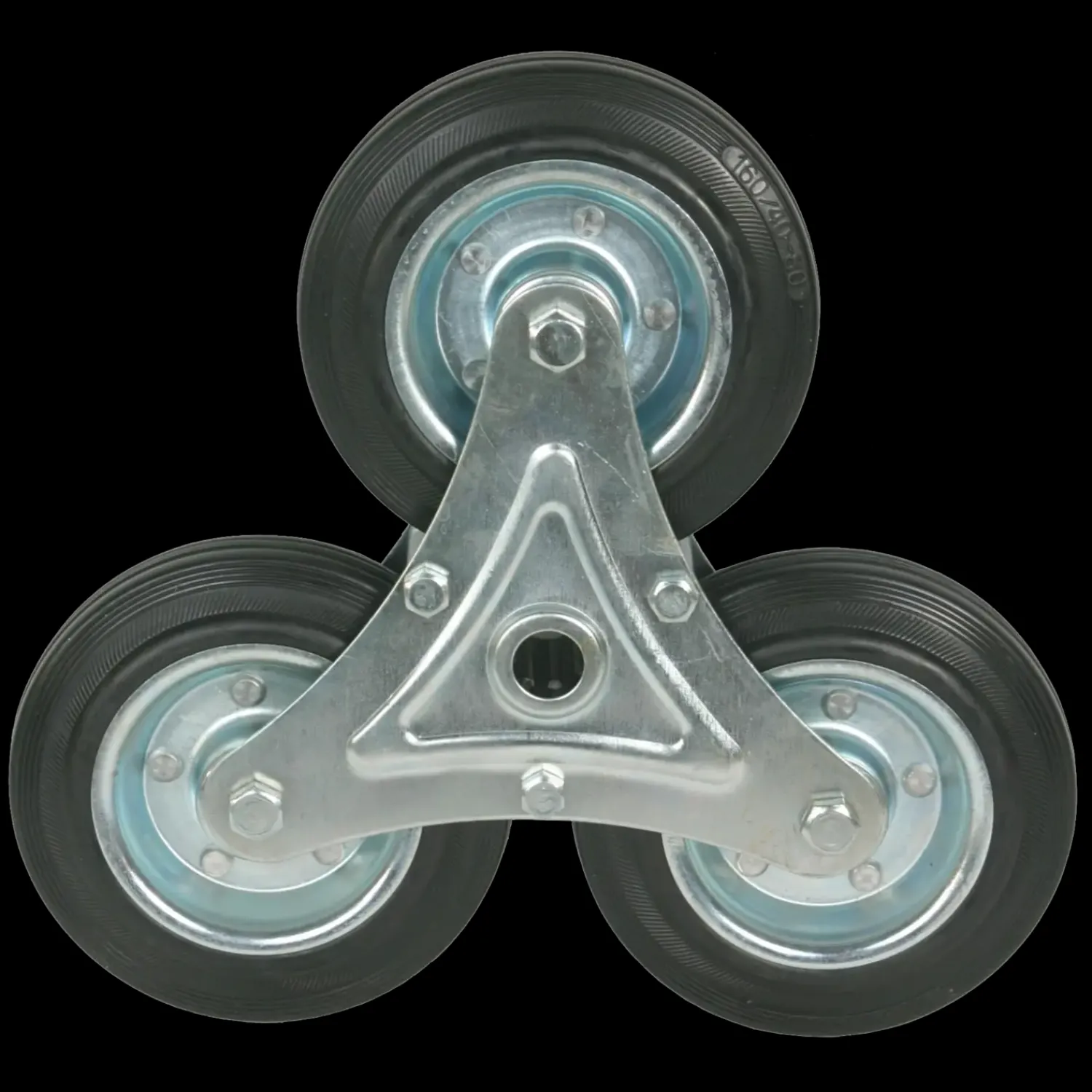 Komplet hjul-trekant. Massive hjul 150 x 40. Nav: 20 x 60 mm. Stålfælg med rulleleje.