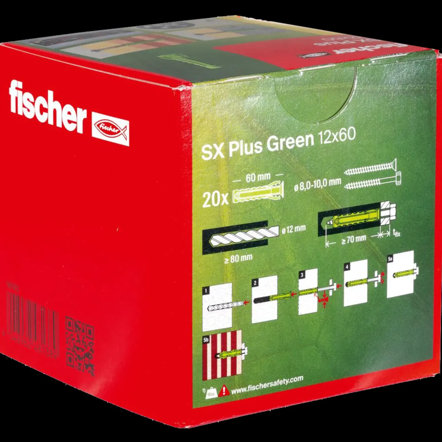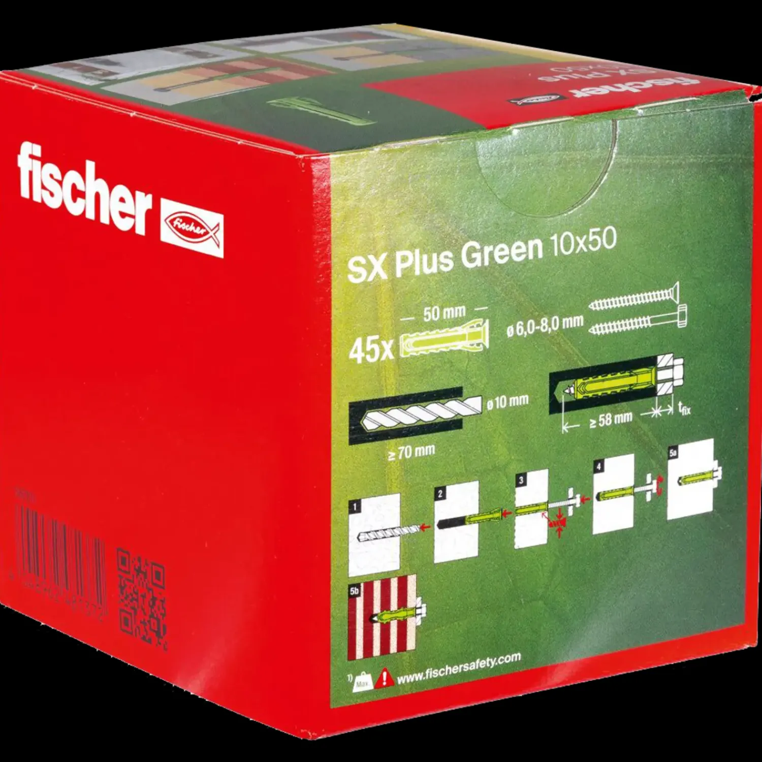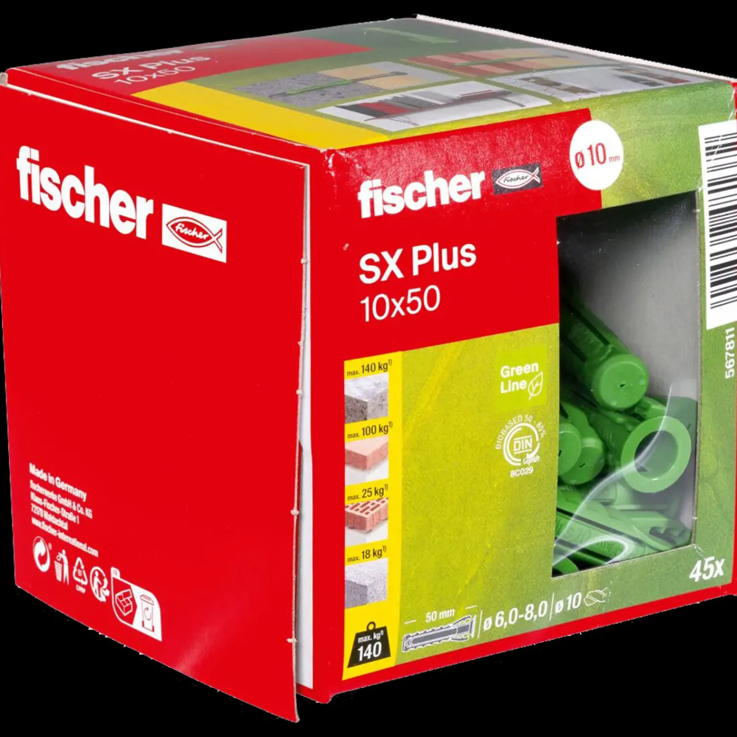 fischer Ekspansionsplug SX Plus Green er produceret af mindst 50% genanvendelige råmaterialer. Takket være 4-sidet ekspansion er fischer SX Plus Green ekspansionsplug din specialist til massive byggematerialer såsom beton, kalksandsten og murværk. De specielle fastgørelsesvinger griber skruen ved let indføring, hvilket gør pluggen velegnet til montage over hovedet, hvor hænderne skal være fri. Den fleksible kant garanterer forøget sikkerhed, idet den forhindrer pluggen i at glide ind i borehullet.