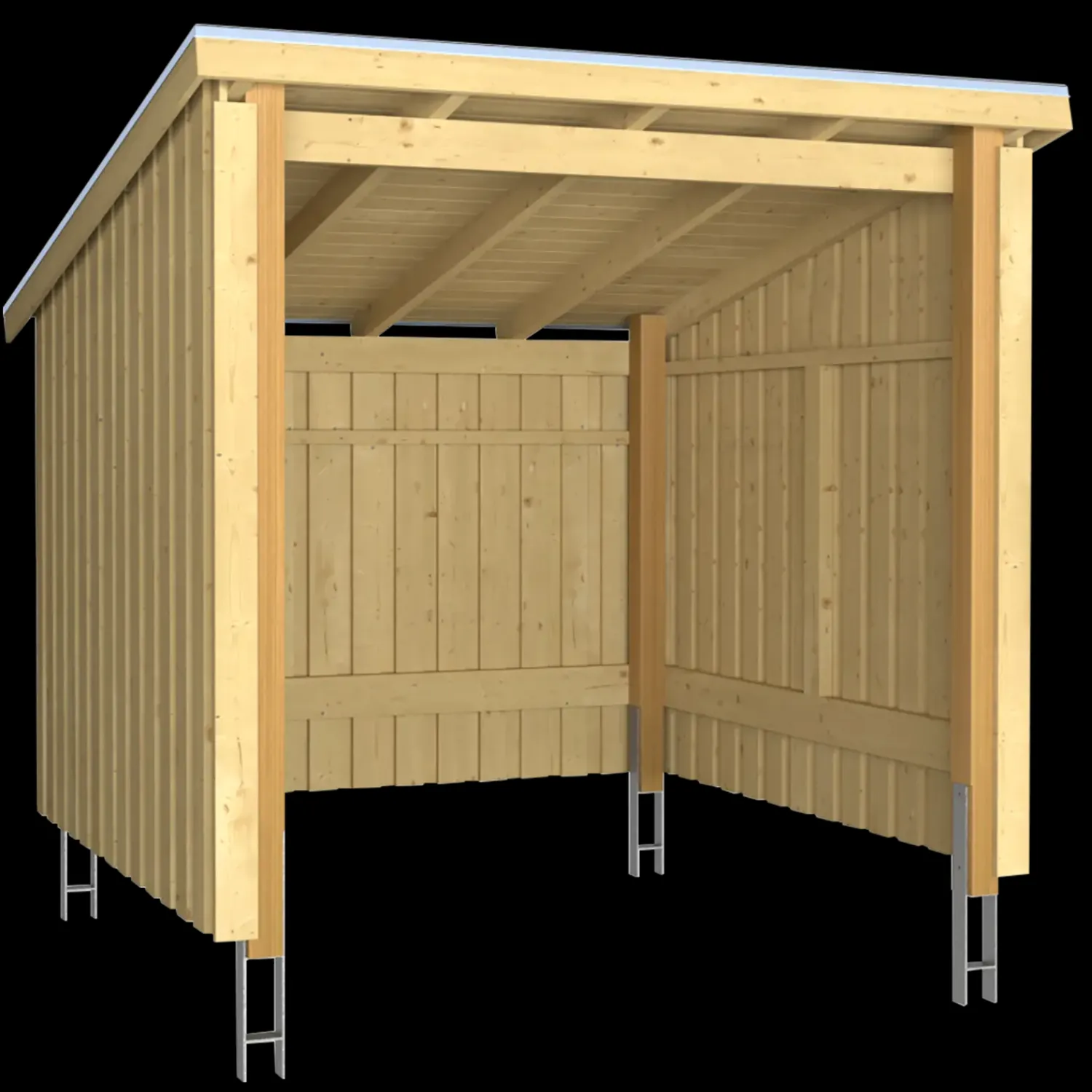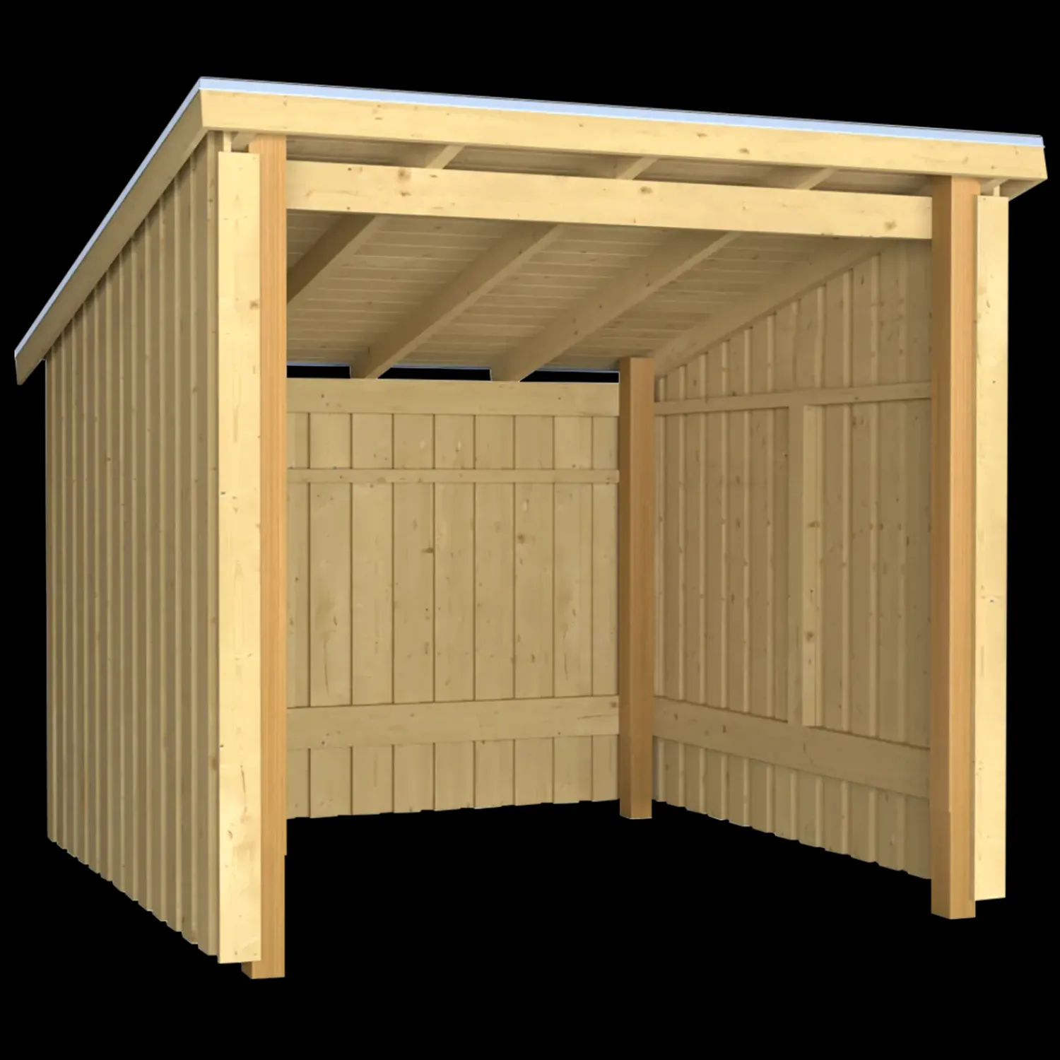 Cykelskuret er fremstillet i ubehandlet nåletræ og leveres med trykimprægnerede høvlede stolper.