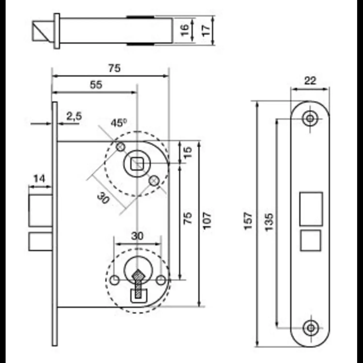 Ruko Låsekasser, Cylindre Og Dørbeslag^2214 mellemdørslås højre/vendbar dornmål 55 mm