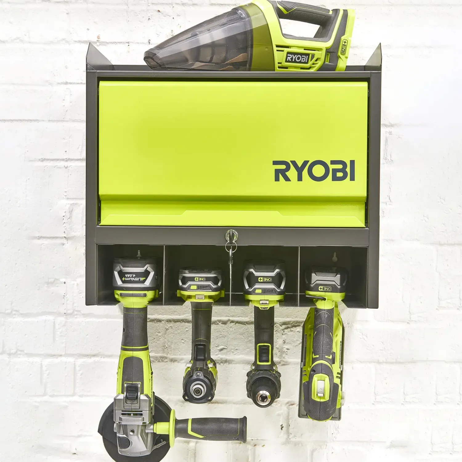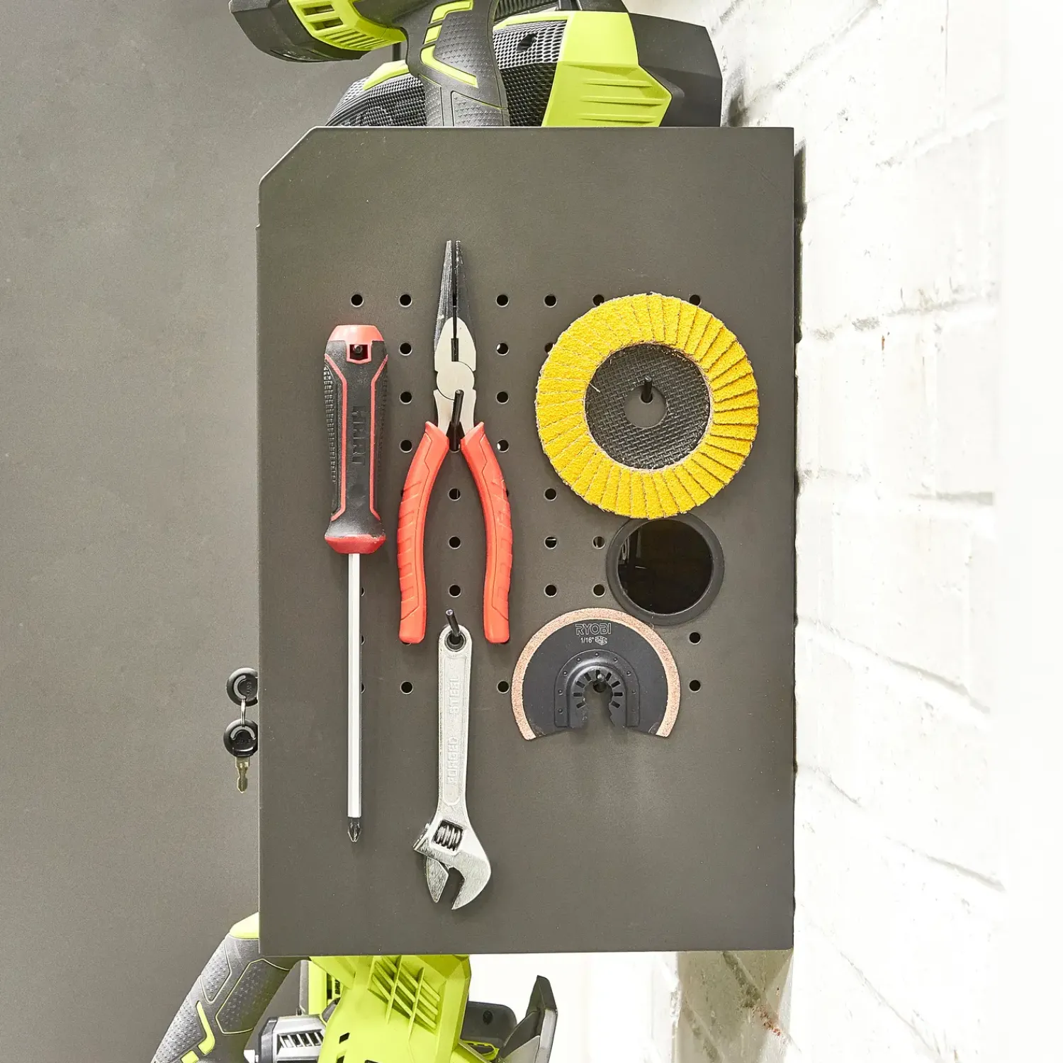 Super praktisk værktøjsskab til montering på væggen.