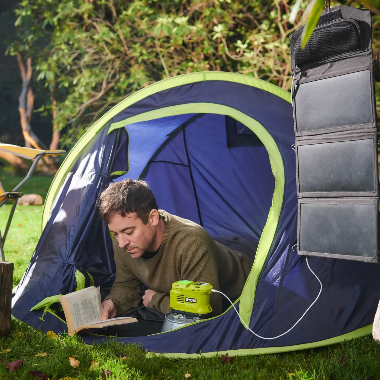 - Kompatibel med Ryobi-solpaneler, hvilket betyder, at du kan oplade dine ONE+-batterier med kun solens kraft
