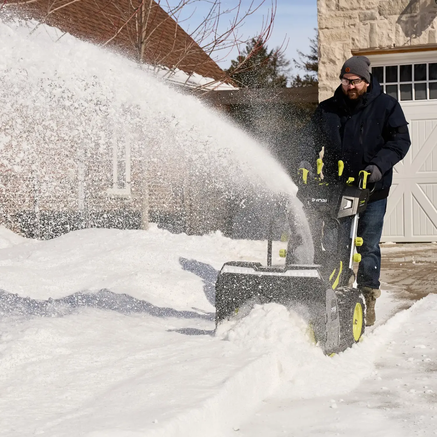 - Den opvarmede håndtag, gør at du kan holde dine hænder varme, mens du rydder sne fra dit udendørs område