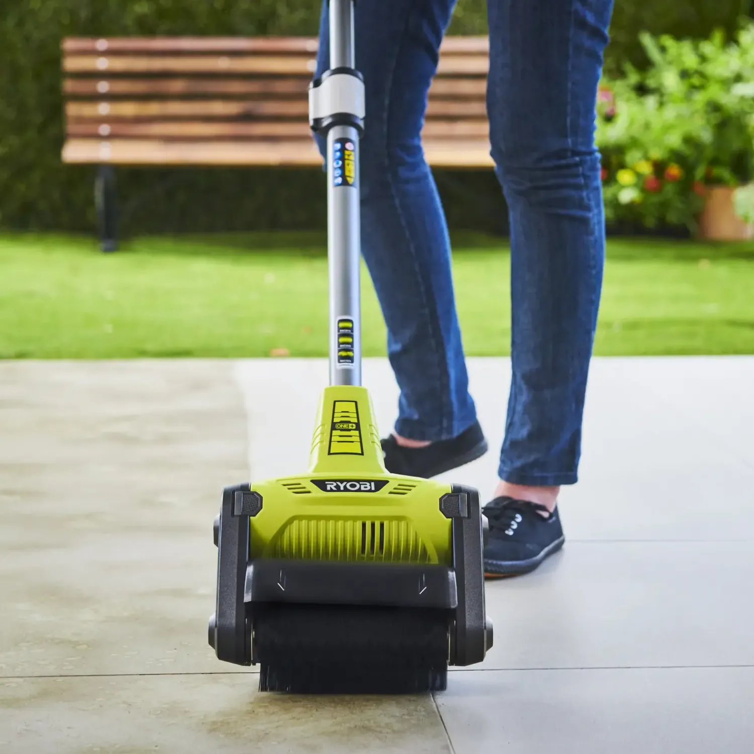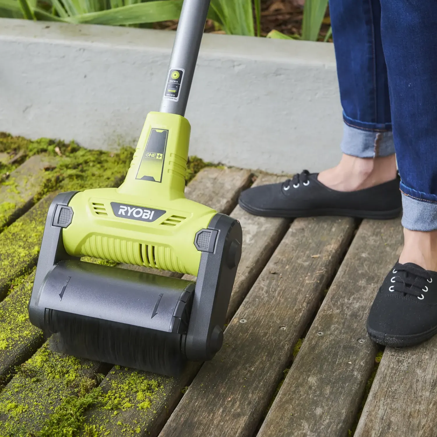 Terrasserenser med multibørste 18V ONE+. Rengør let og enkelt en lang række hårde overflader i haven. Multibørsten fjerner mos, snavs og ukrudt og kan anvendes til at rengøre træteressen, fliserne og indkørslen. Nem og enkel udskiftning af børsten. Vertebrae design med justerbart håndtag og teleskopgreb for behagelig rengøring i længere tid. Som en del af ONE+ familien, der er kompatibel med alle Ryobi 18V-seriens have- og elværktøjer. Leveres med multifunktionel overfladebørste.
