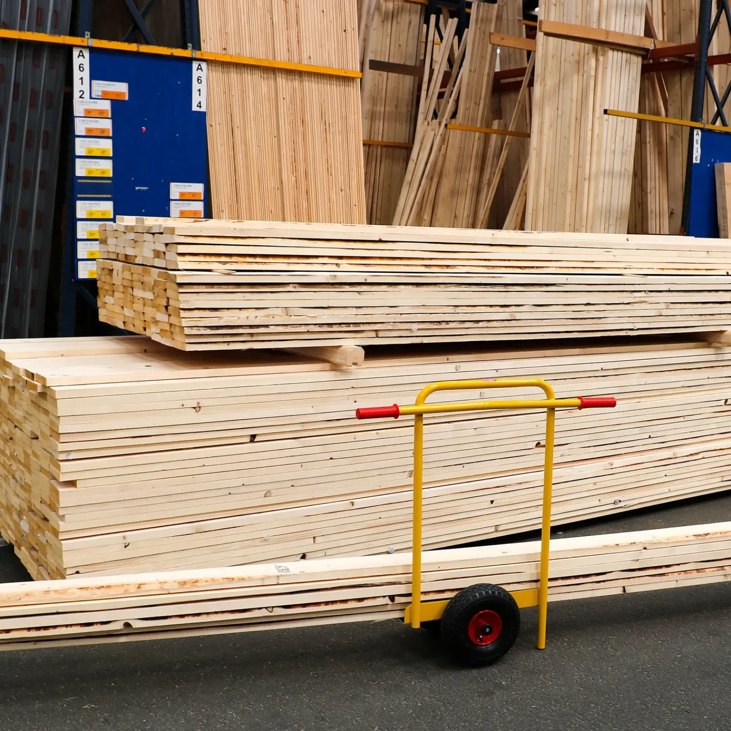 Pladehund med bøjle og håndtag til transport af krydsfiner, gipsplader, døre, vinduer, metalplader og meget mere.