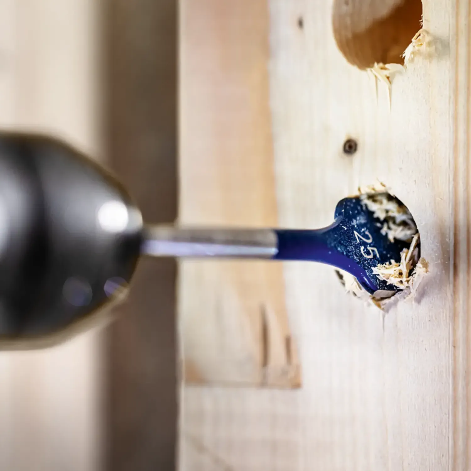 Bosch EXPERT SelfCut Speed fladbor er på hjemmebane både i blødt træ, spånplader og fiberplader og sikrer høj effektivitet og praktisk bekvemmelighed til håndværkere, der har brug for at bore huller eller fordybninger til kabler, dyvler og andre hardwareinstallationer.