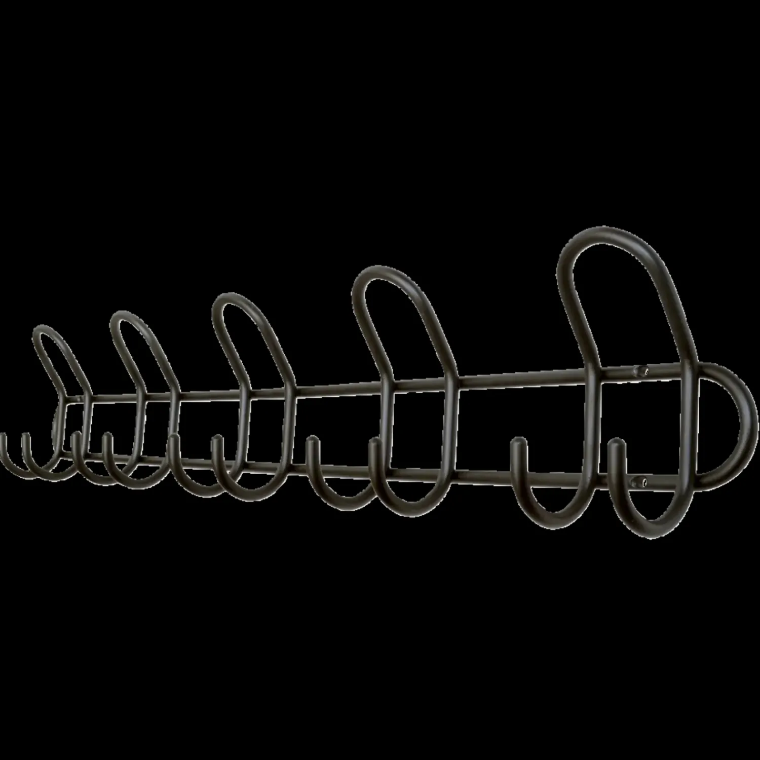Home it Knagerække med 5 knage i sort. Knagerække med 5 knage, med 2 på hver, samt hatteknag øverst. Knagerækken er fremstillet i pulverlakeret stål og kommer med skruer og plugs til montering.