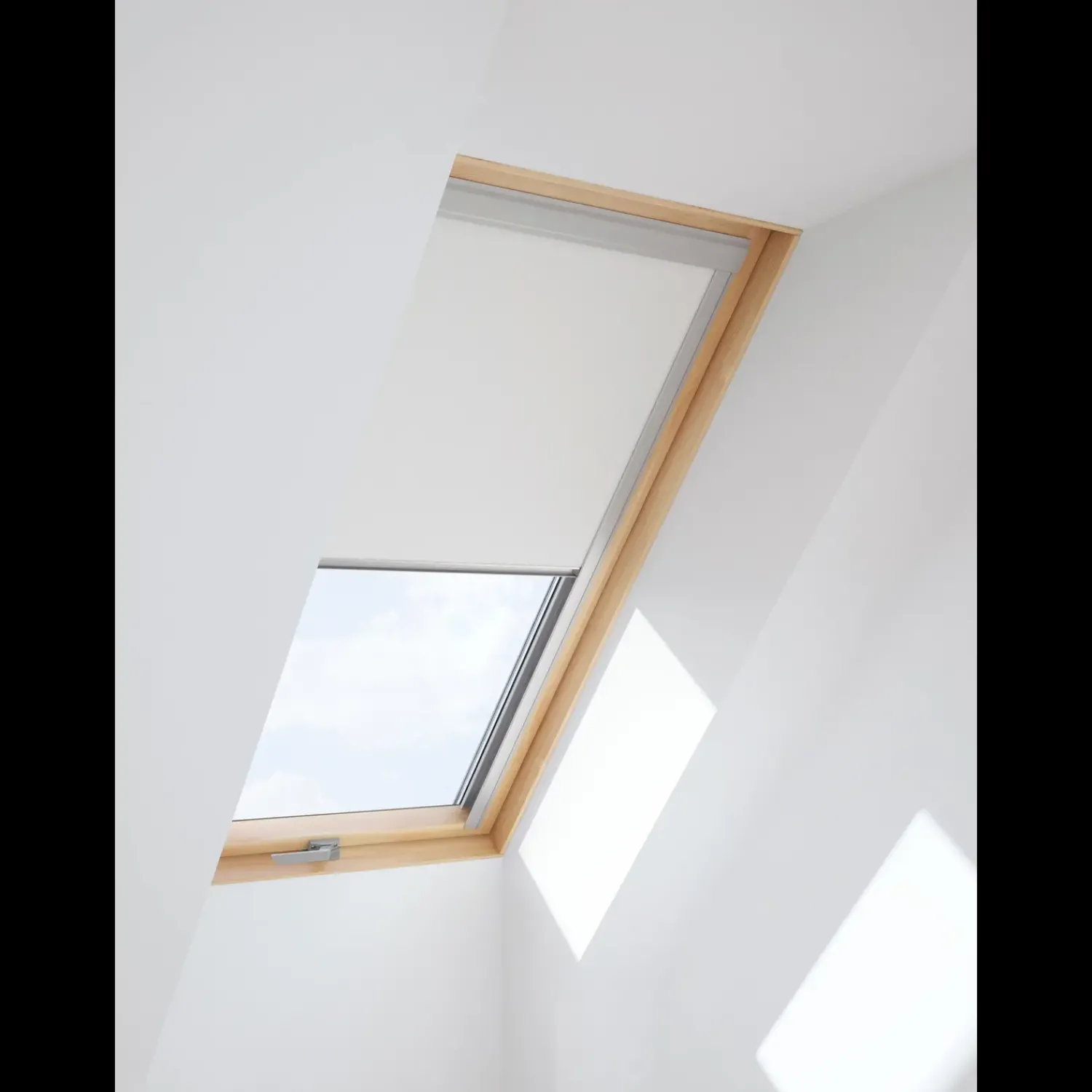 Mørklægningsgardin til justering af lydsindfald, monteres i elegant skinne indvendigt i ovenlysvinduet. Passer også til de fleste ovenlysvinduer fra andre producenter. Gardinet kan indstilles i mange forskellige positioner afhængigt af ønsket lysindfald.