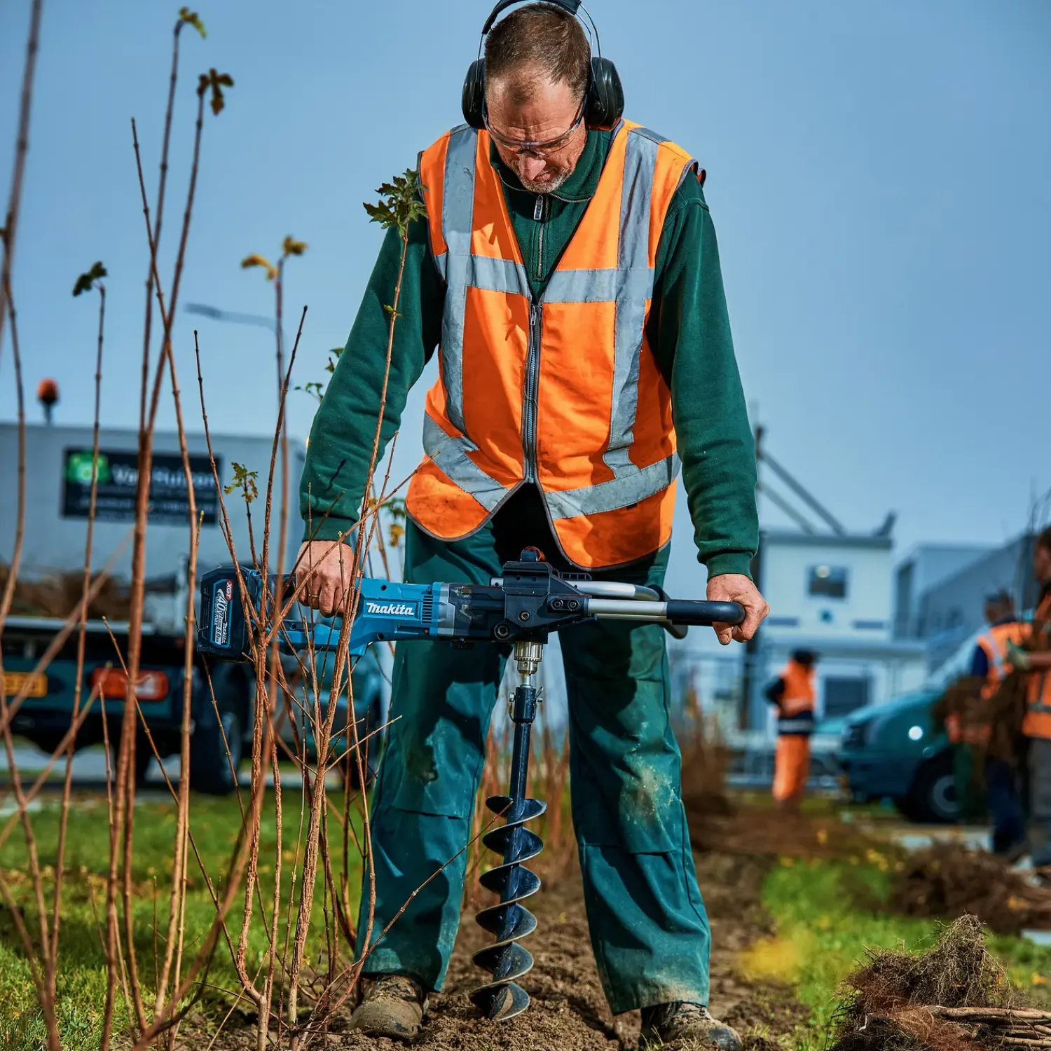 Borer ca.155 huller Ø150 mm eller ca. 90 huller Ø 200 mm i en dybde på 600 mm med 4,0Ah batteri. To LED lamper sørger for lys på mørke steder, vendbar omdrejninger hvis boret sætter sig fast og overbelastningssikring gør denne maskine til det perfekte valg ved boring af huller til stolper, hegnspæle og byggeri.