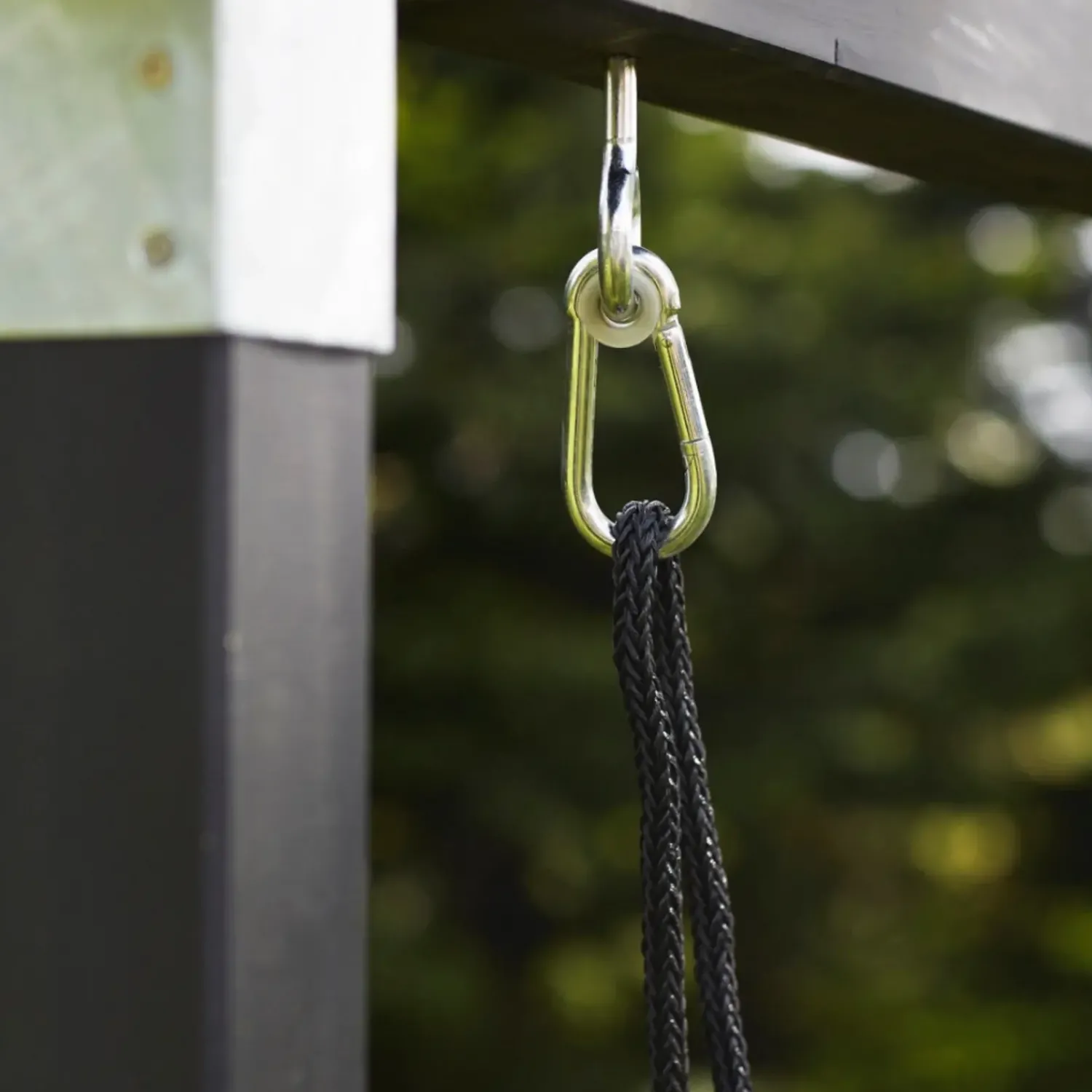 Med et gyngestativ har de små i familien altid noget at få tiden til at gå med. At gynge giver ikke kun børnene røde kinder og masse af sjov i de fri, det styrker også motorikken. Plus Cubic er et lækkert og stilfuldt gyngestativ inkl. rund redegynge i sort og blå der har en diameter på 98 cm og kan klarer en maks. belastning på 150 kg.