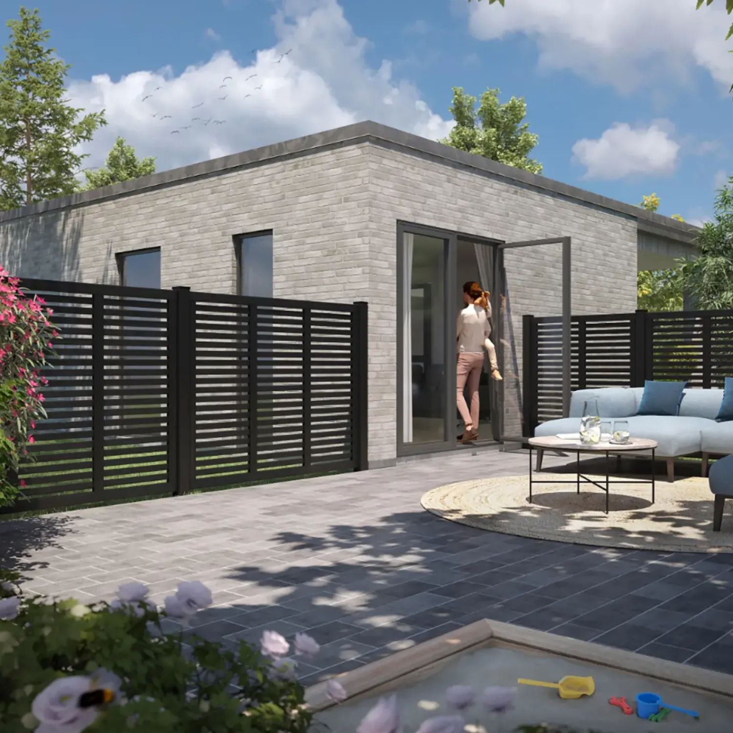 Lad harmonien brede sig i dit uderum med dette smukke listehegn.De smalle lister virker kamuflerende, så indkig begrænses uden at lukke helt. Samtidigt skaber samspillet mellem lodrette og vandrette lister en flot persienneeffekt, der leder tankerne hen på de betagende, japanske foldevægge.Hegnet er helt ens på begge sider og er derfor ideelt som afskærmning, rumdeler eller i et naboskel, hvor hegnet ses fra flere sider.