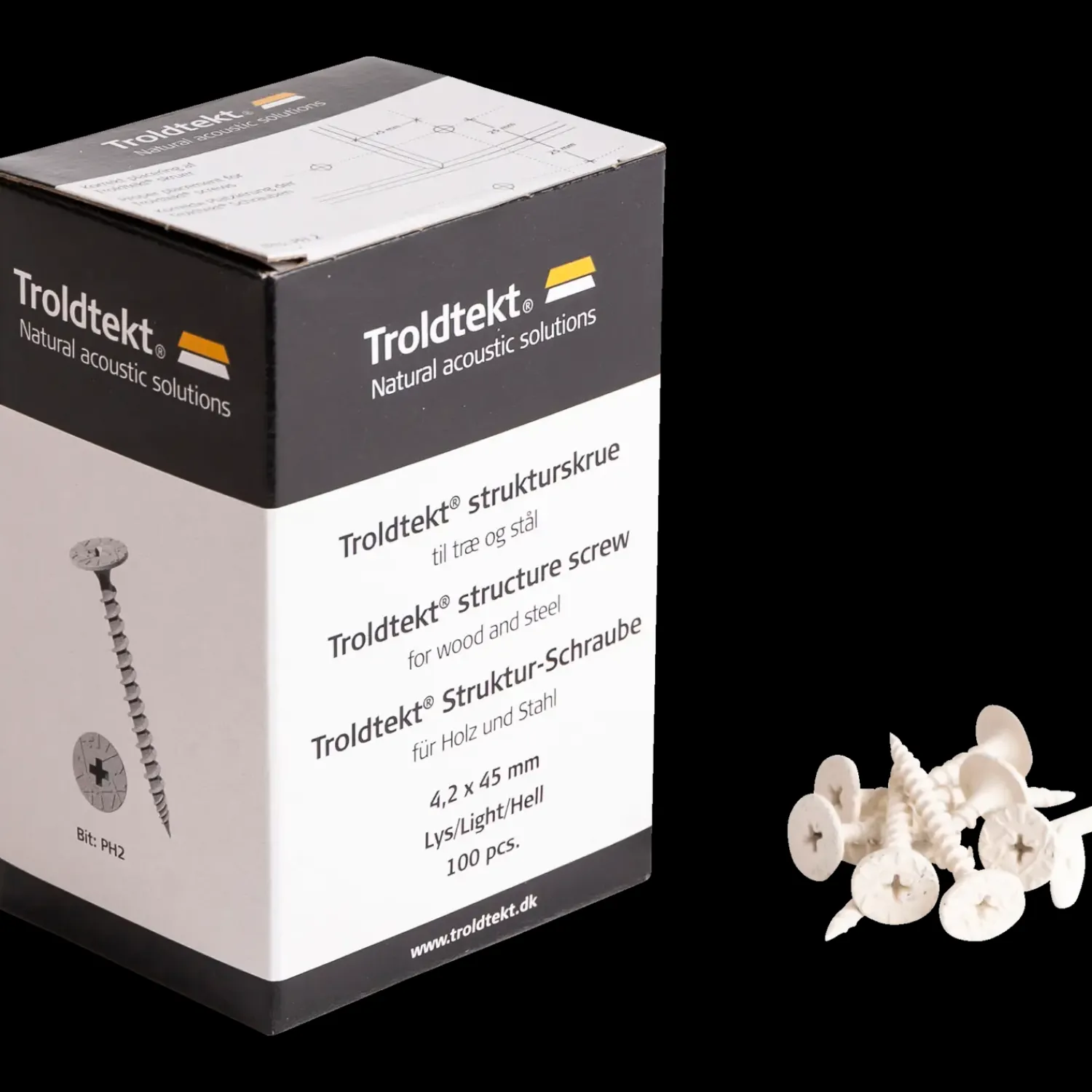 Troldtekt strukturskruer er udviklet specielt til træbeton loftspladerne fra Troldtekt.