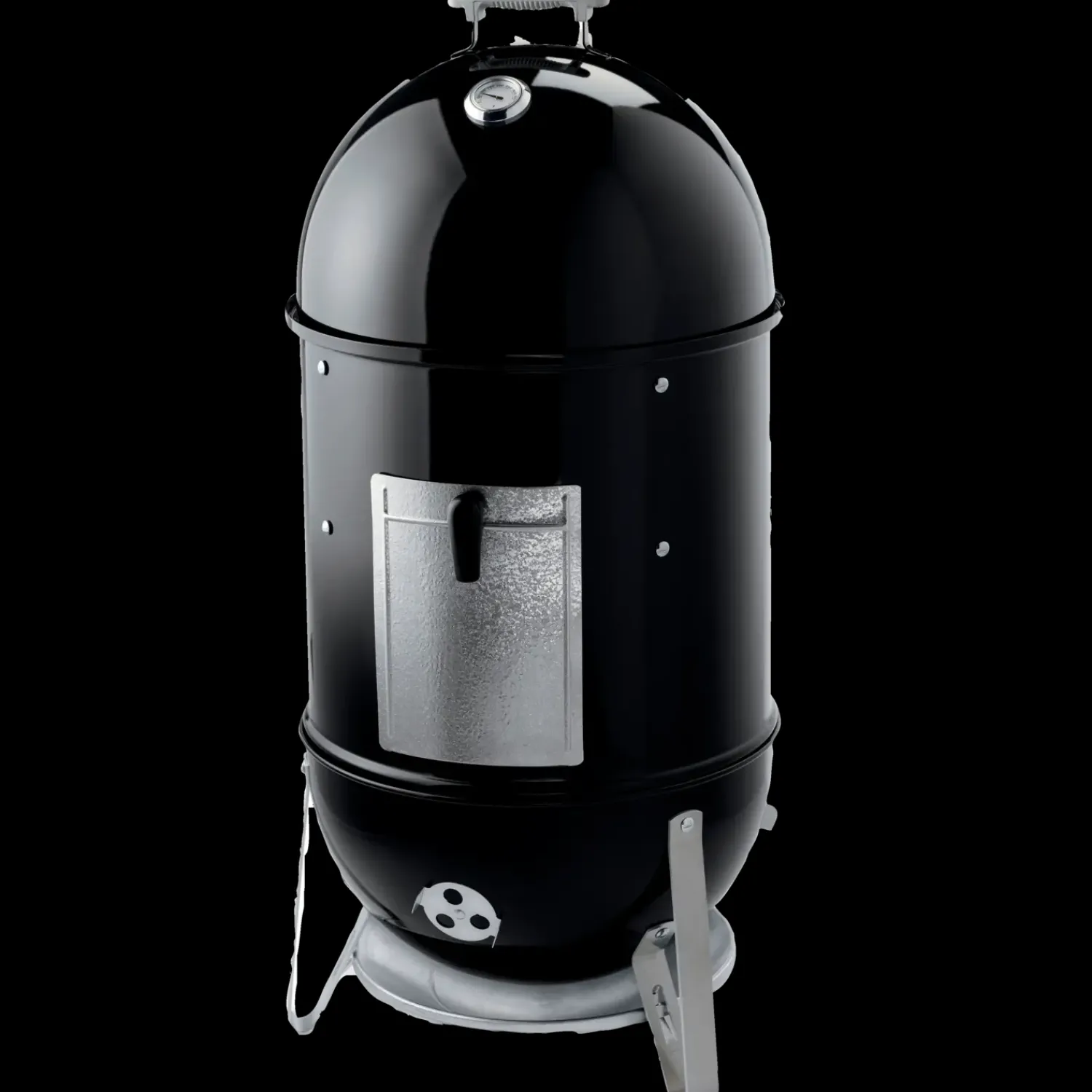 - Styr temperaturen på din smoker ved at justere de fire luftspjæld – hvis du lukker spjældene helt, stoppes lufttilførelsen, så kullene går ud