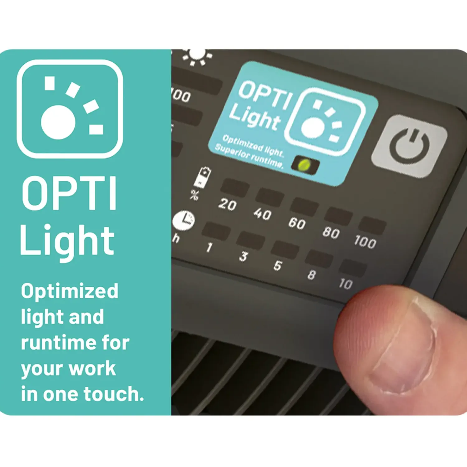 NOVA R drives af et højeffektivt multi-LED-design med 44 lysdioder, og leverer op til 2000 lumen. OPTILight-indstillingen leverer den nødvendige belysningsstyrke (LUX) i en typisk arbejdssituation, og sikrer optimeret lys samt driftstid med et enkelt tryk.
