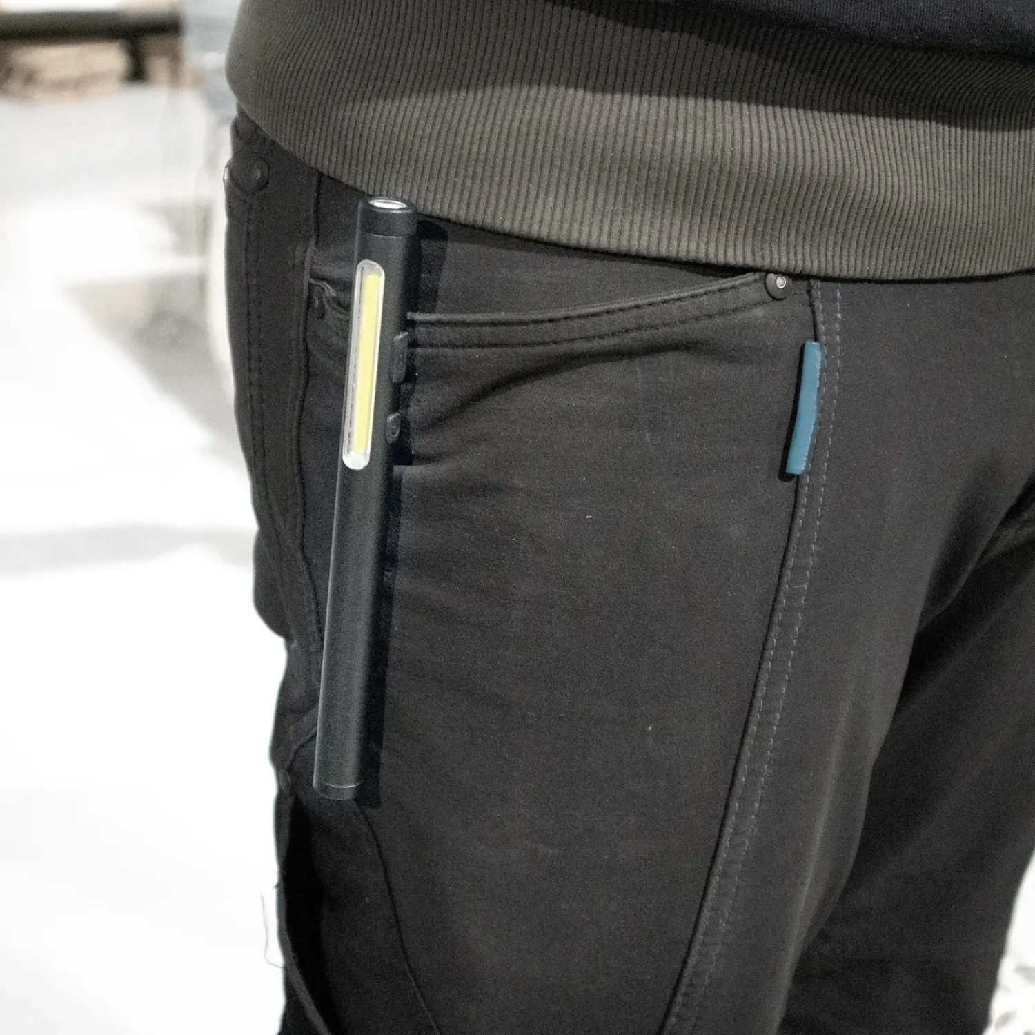 Genopladelig LED-pencillygte med trinløs lysdæmperfunktion, indbyggede magneter og 200 lumen