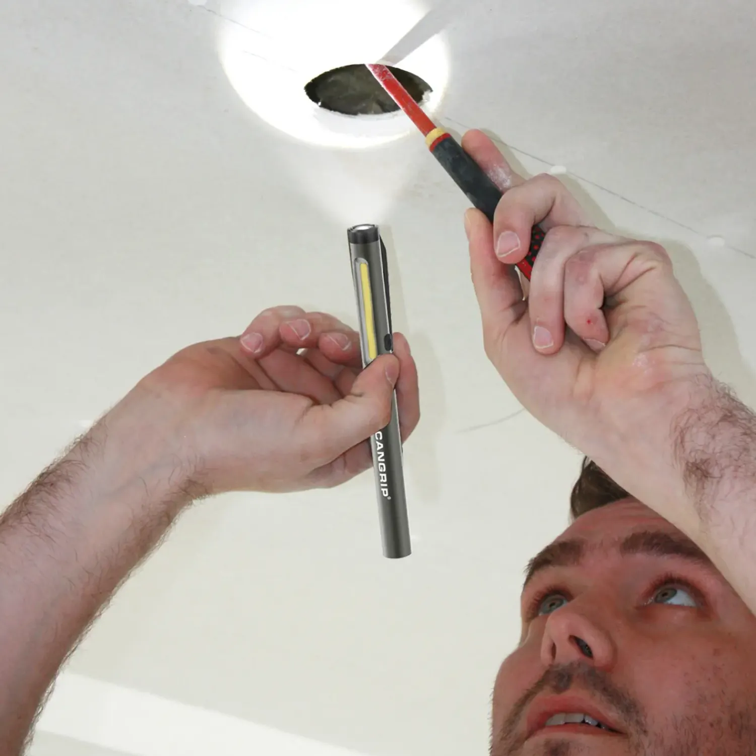 Pencillygten leverer et særdeles kraftigt lys, både fra hovedlyset (op til 200 lumen), men også fra præcisionsspotlyset i toppen (150 lumen), hvilket er er ret enestående for så lille en lampe. En trykknap på siden giver nem énhåndsbetjening. Derudover leveres lampen også med en trinløs lysdæmperfunktion fra 10 til 100 %, så lyset kan tilpasses det nødvendige til den specifikke arbejdsopgave.