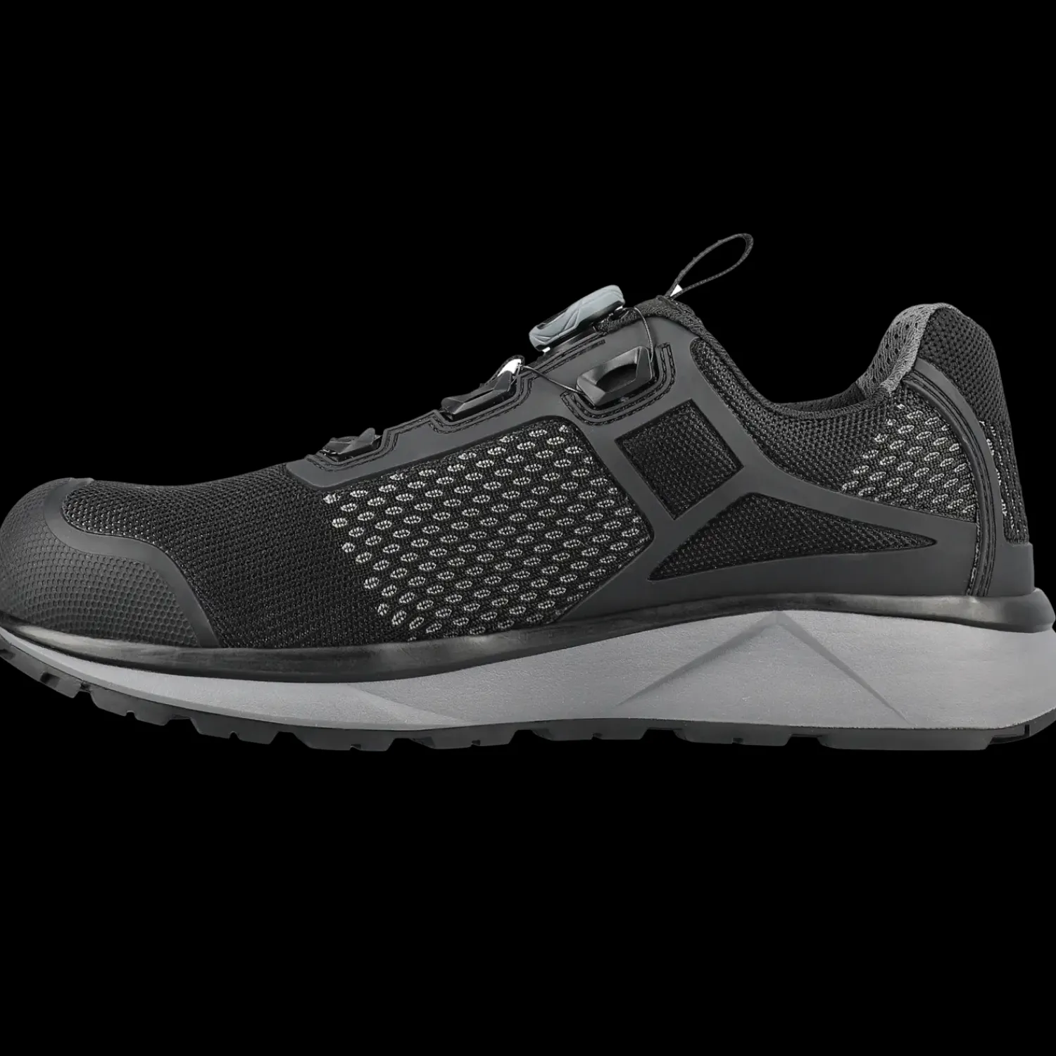Let som aldrig før – selvom den er ret fed! Overdelen er af en strikket, åndbar polyester med fede detaljer i et KPU-materiale, så skoene både bliver mere stabile og slidstærke. At overdelen er strikket giver skoen en fleksibel pasform og reducerer spild i produktionen. Og så er overdelen desuden behandlet med en vandafvisende coating, som sikrer dig tørre fødder. I 903 Phoenix bliver du en hurtig starter takket være det smarte lukkesystem BOA® Fit System. Ligger du meget på knæ i dit arbejde? Så bliver du også glad for 903 Phoenix; den har nemlig en ekstra slidstærk ProNose, der er godkendt efter en ny standard til knælende arbejde. Du vil stå ekstra godt fast på den skridhæmmende gummi-ydersål, og den bløde, stødabsorberende mellemsål i EVA-skum giver dig en oplevelse af komfort og fleksibilitet. Det grove sålmønster med brede riller leder nemt jord, sand, vand og mudder væk fra sålen og giver dig et ekstra godt fodfæste. Du bliver flyvende i Brynje 903 Phoenix!