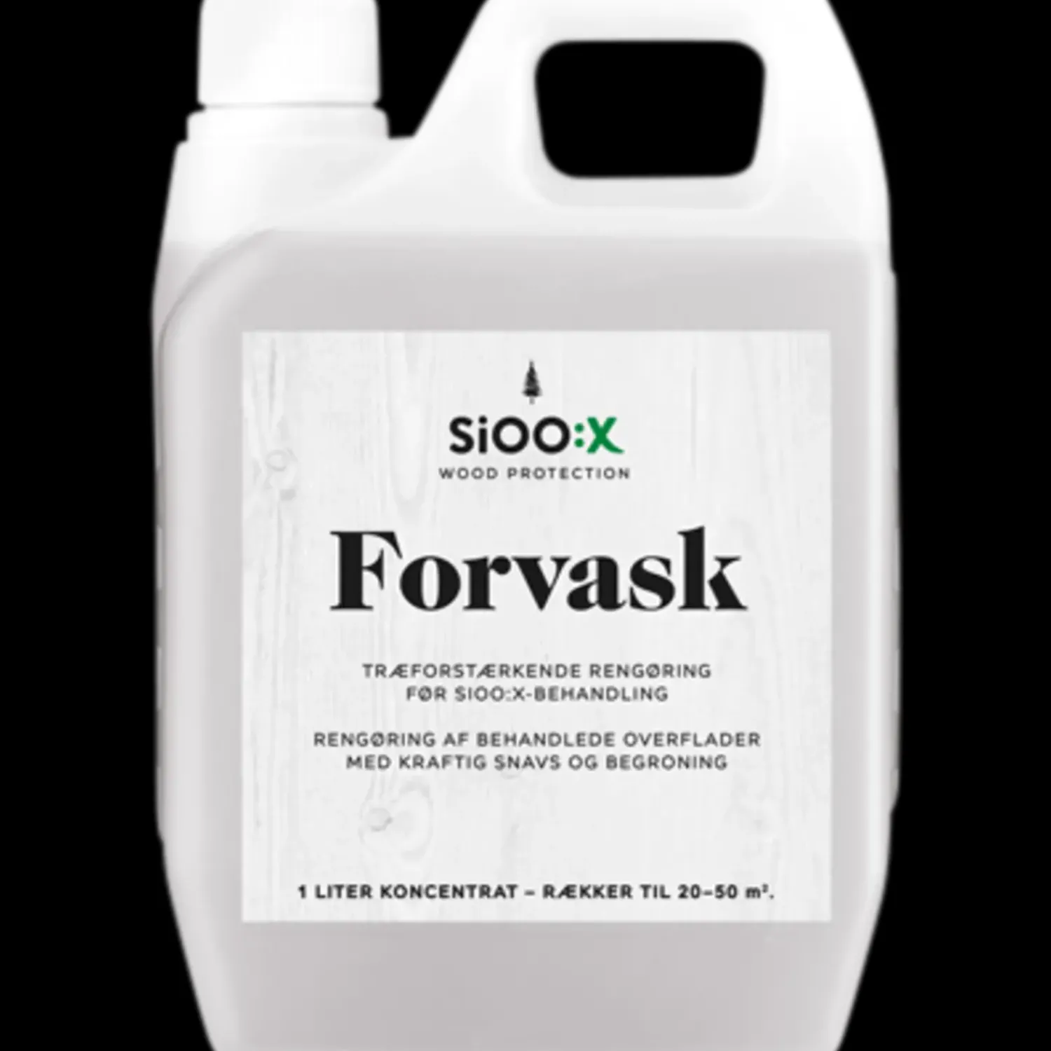 Når træet er blevet renset med SiooX Rensemiddel skal man anvende Forvasken for at forberede det på den videre behandling.