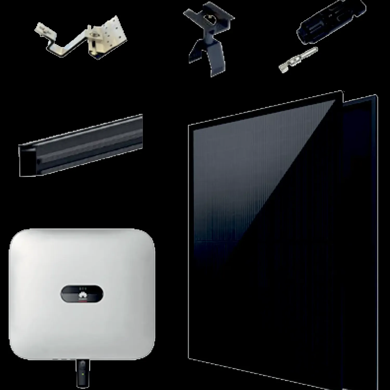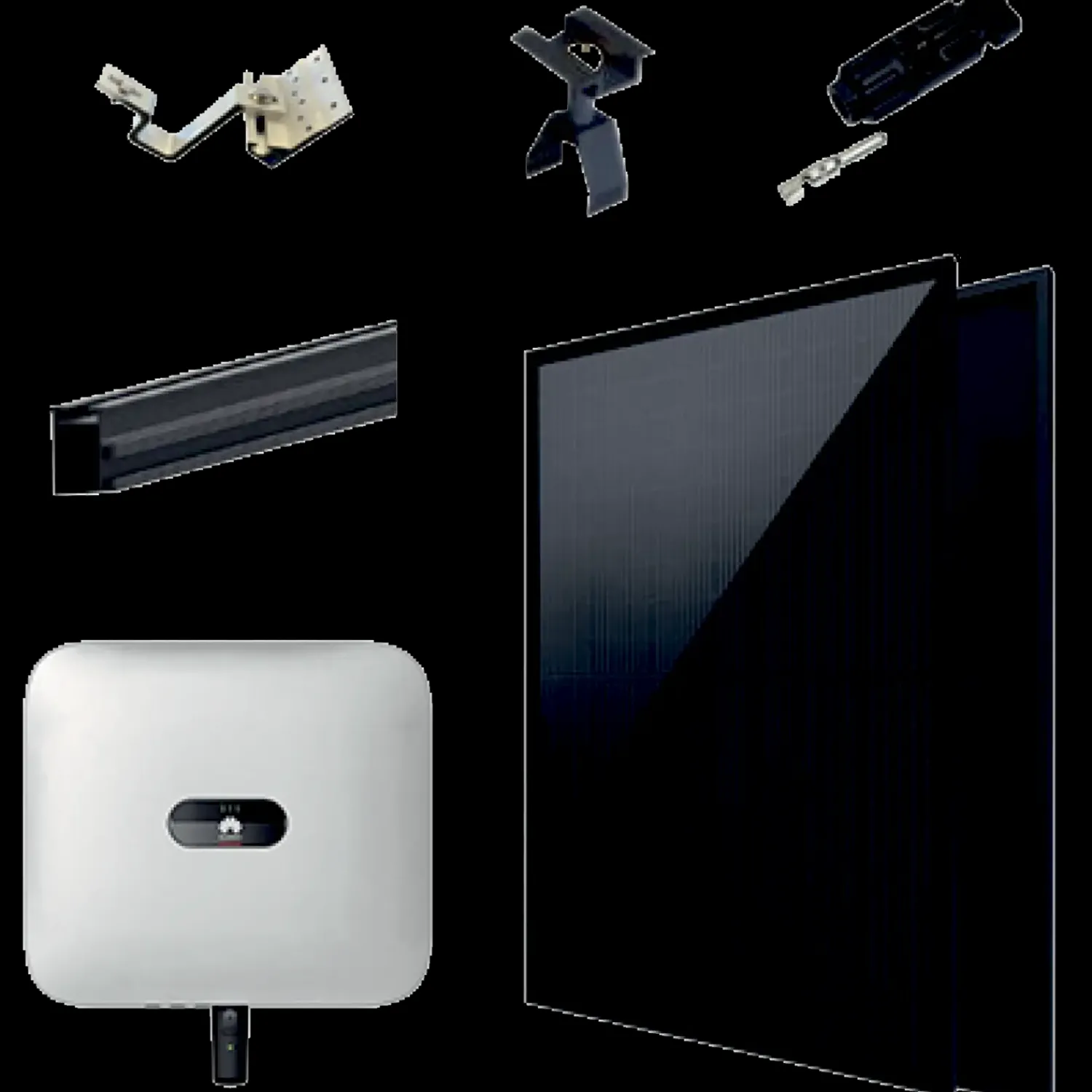 Solcellepakke til tegl- og betontag 14 stk. Hyundai solcellepaneler 430Wp 6,02 kWp, 5 kW Huawei hybrid inverter.