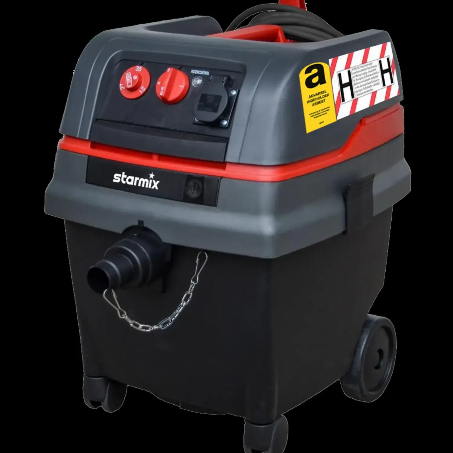 og godkendelse, der kræves for at være ”H”-mærket. Som en af de få støvsugere på markedet kan udblæsningsluften bortledes fra Starmix Asbest-