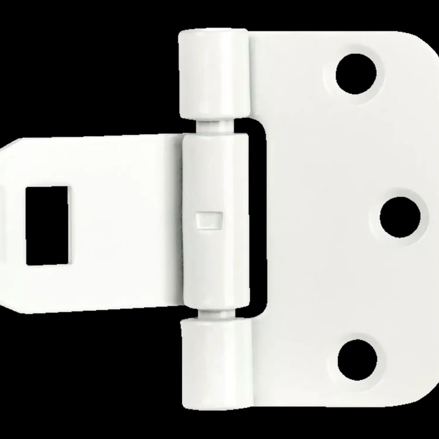 Hvid snap-in hængsel til døre og karme. Hængslet kan justeres i højden (-3 til +3 mm)