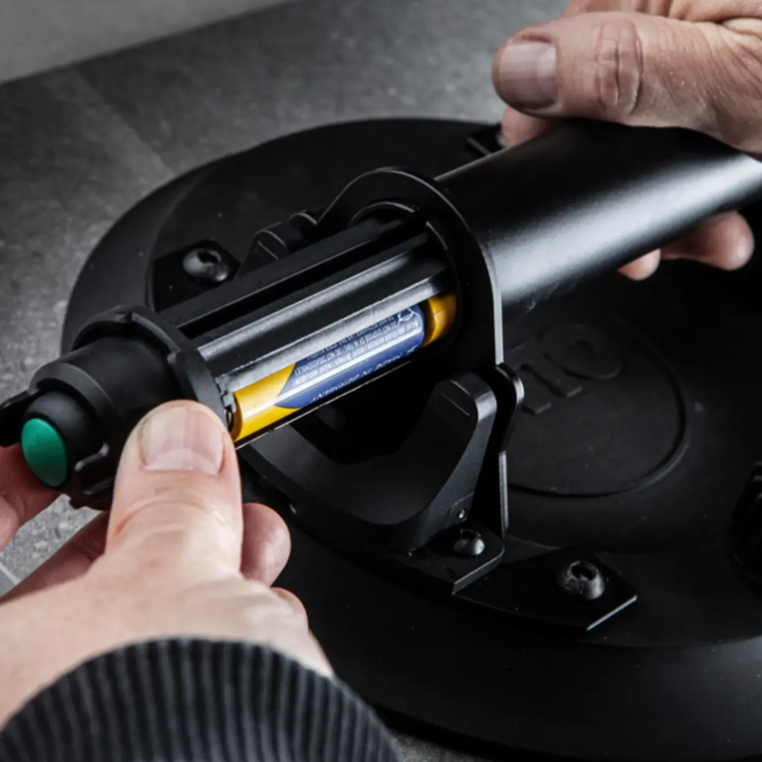 OTTOVAC er den første professionelle elektriske håndholdte sugekop med AA-batterier, automatisk start/stop samt tryksensor. Så snart vakuumet falder, tænder pumpen automatisk, og når vakuumet er tilstrækkeligt, slukker den automatisk igen. OTTOVAC kører på 4 stk. AA-batterier som let kan skiftes fra sugekoppens håndtag. OTTOVAC er egnet til løft af glas, keramiske fliser og andre genstande med en ikke-porøs og glat overflade.