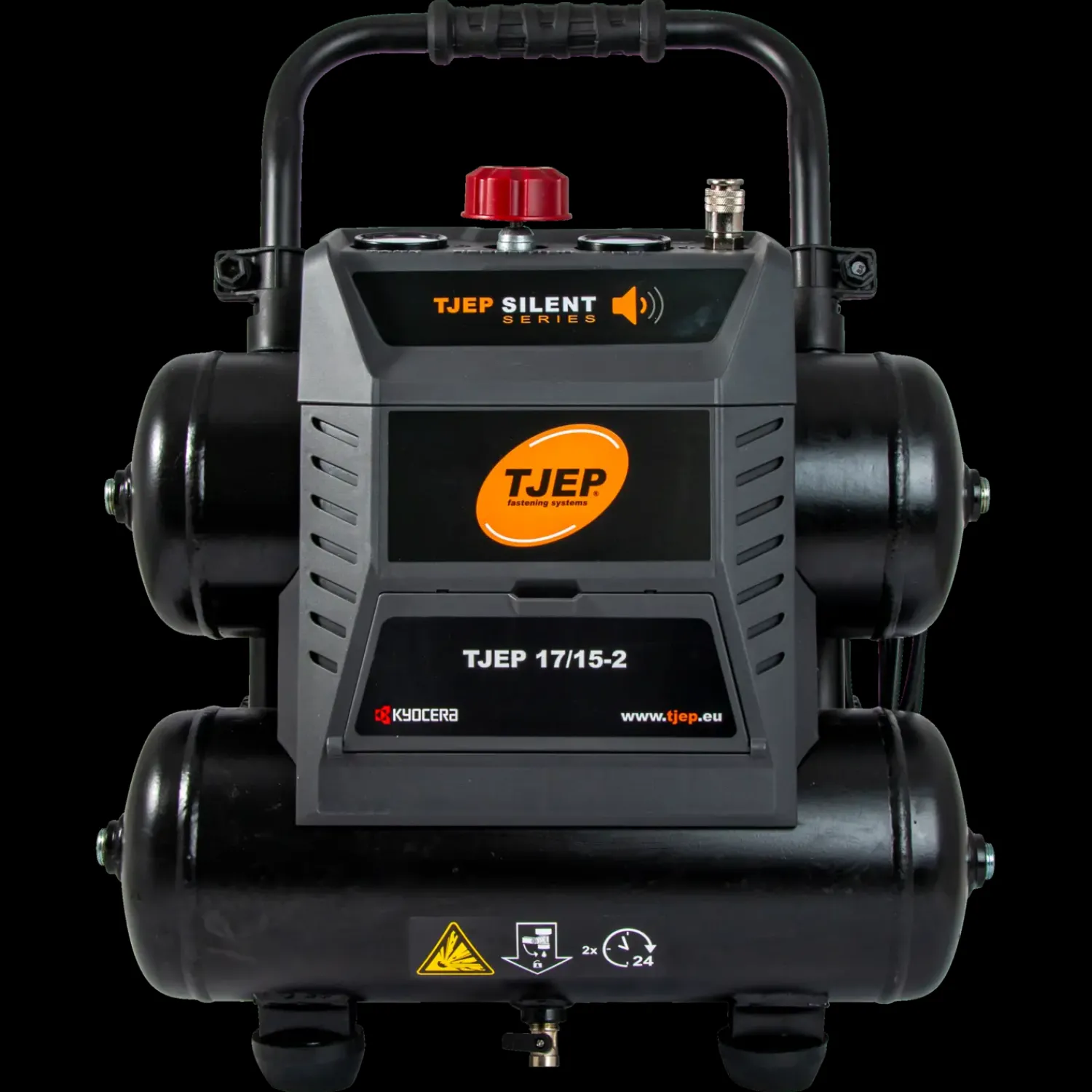- TJEP 17/15-2 leveres med et quick fix teleskophåndtag, som er unik for denne model. Quick fix håndtaget gør transporten nemmere og samtidig fylder kompressoreren ikke meget, når håndtages skubbes ned.