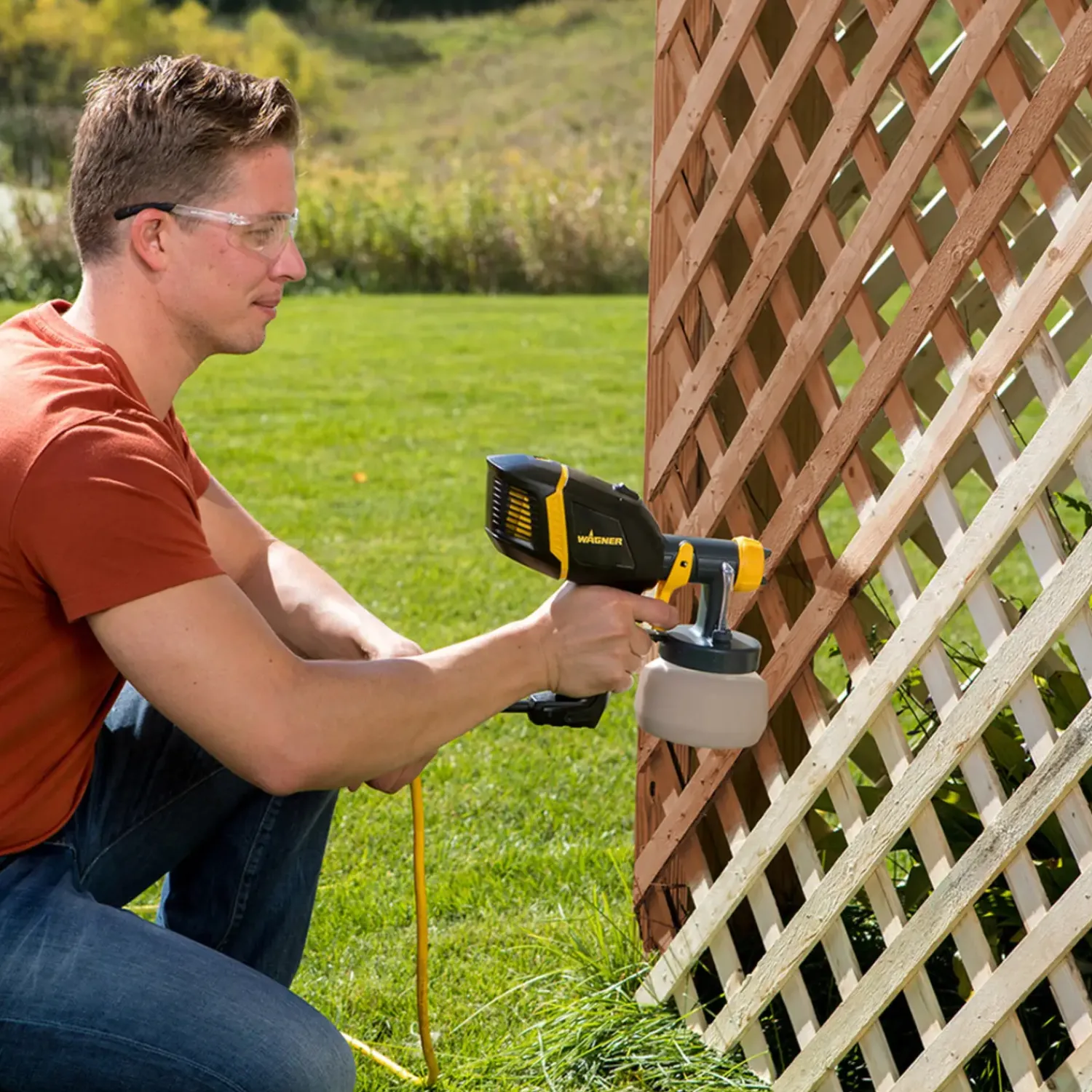 Ideel til lakker og laserende malinger. Arbejdshastighed: 5 m2 på 10 min. Malingsflow: 0-140 ml/min., det berøringsfrie system bevirker, at du nemt kan påføre lakker, lasurer og træbeskyttelse jævnt og dækkende. Desuden kan du uden problemer nå ind til vanskeligt tilgængelige steder.