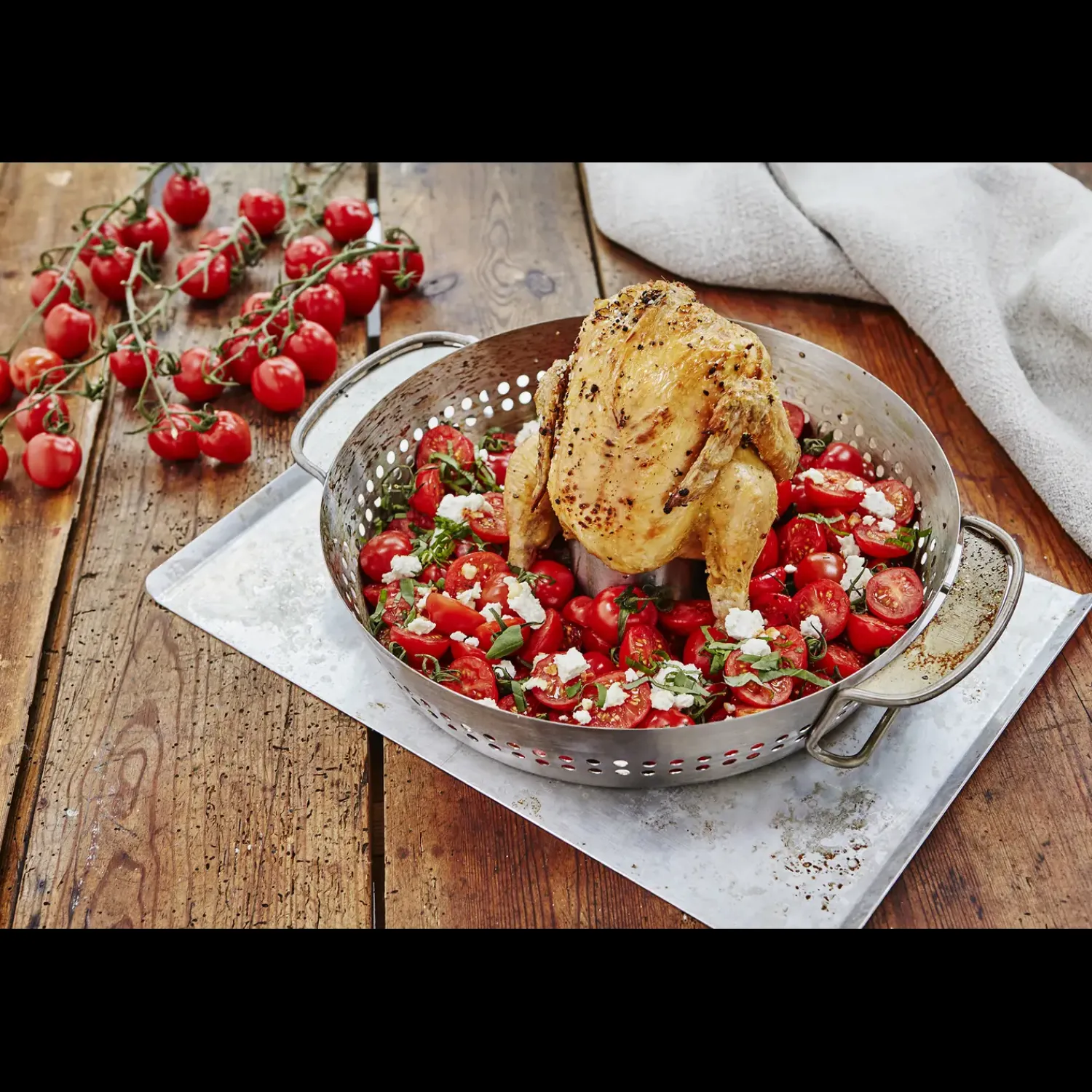 Stegegryden er udstyret med flere brugervenlige detaljer, såsom fladt låg du med fordel kan anvende som stegeplade. Derudover er låget designet til at holde på fugten. Stegegrydens dele kan bruges sammen og hver for sig, hvilket giver dig utallige tilberedningsmuligheder.