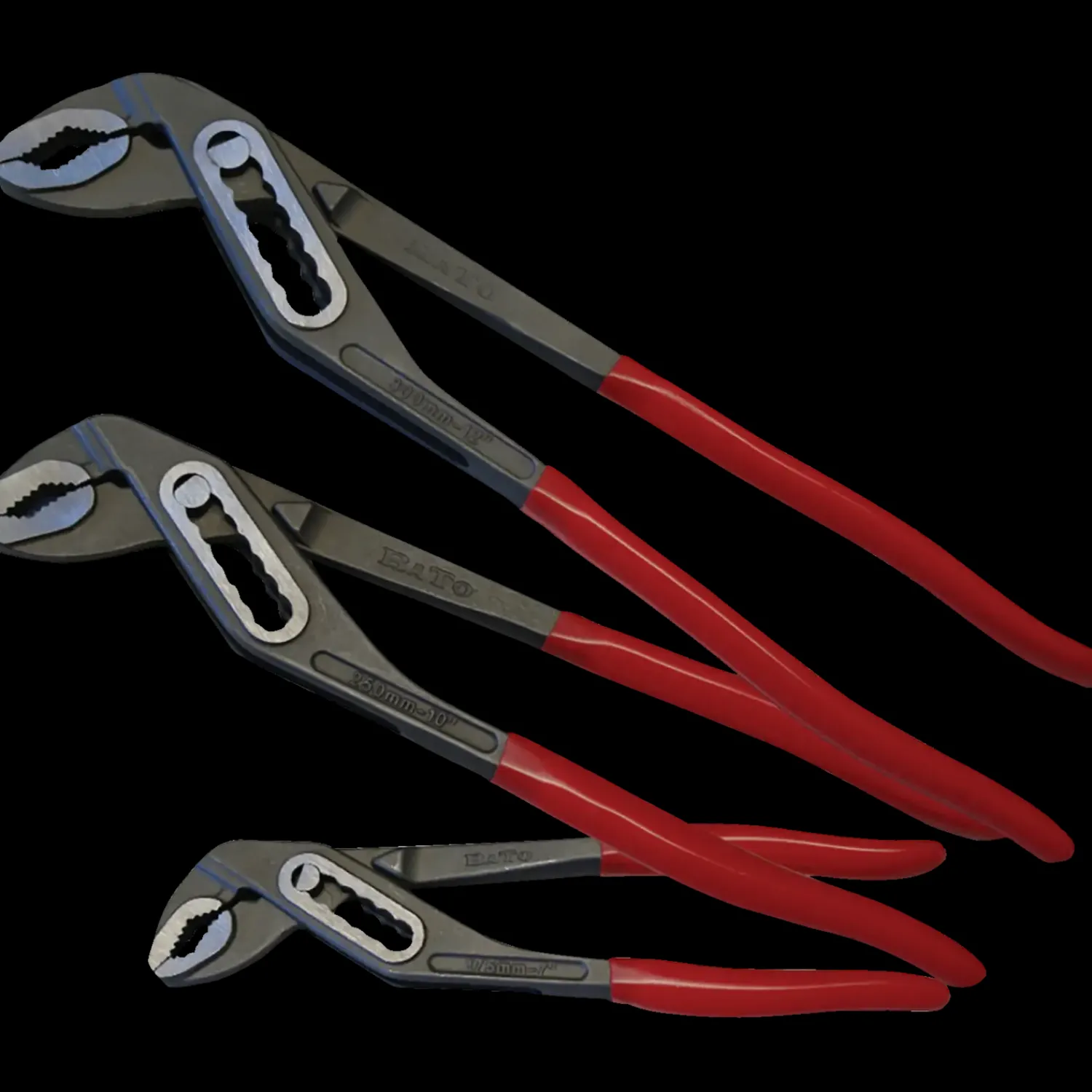 3 vandpumpetænger med rødt dyppet greb for sikkert greb om tangen under arbejdet.