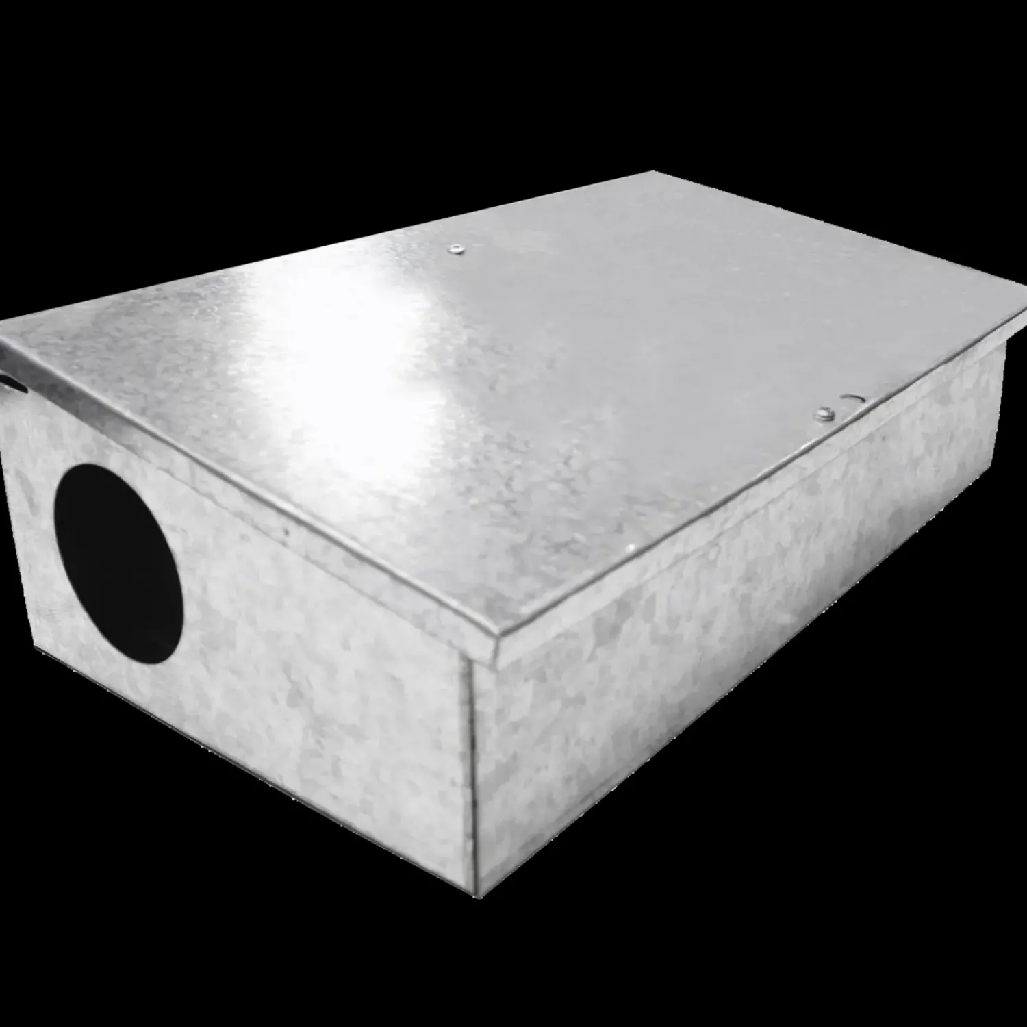 Rottegiftkasse med 2 åbninger med seperat giftafdeling med 2 stifter til at placere gift på låse-/lukkefunktion på låget.