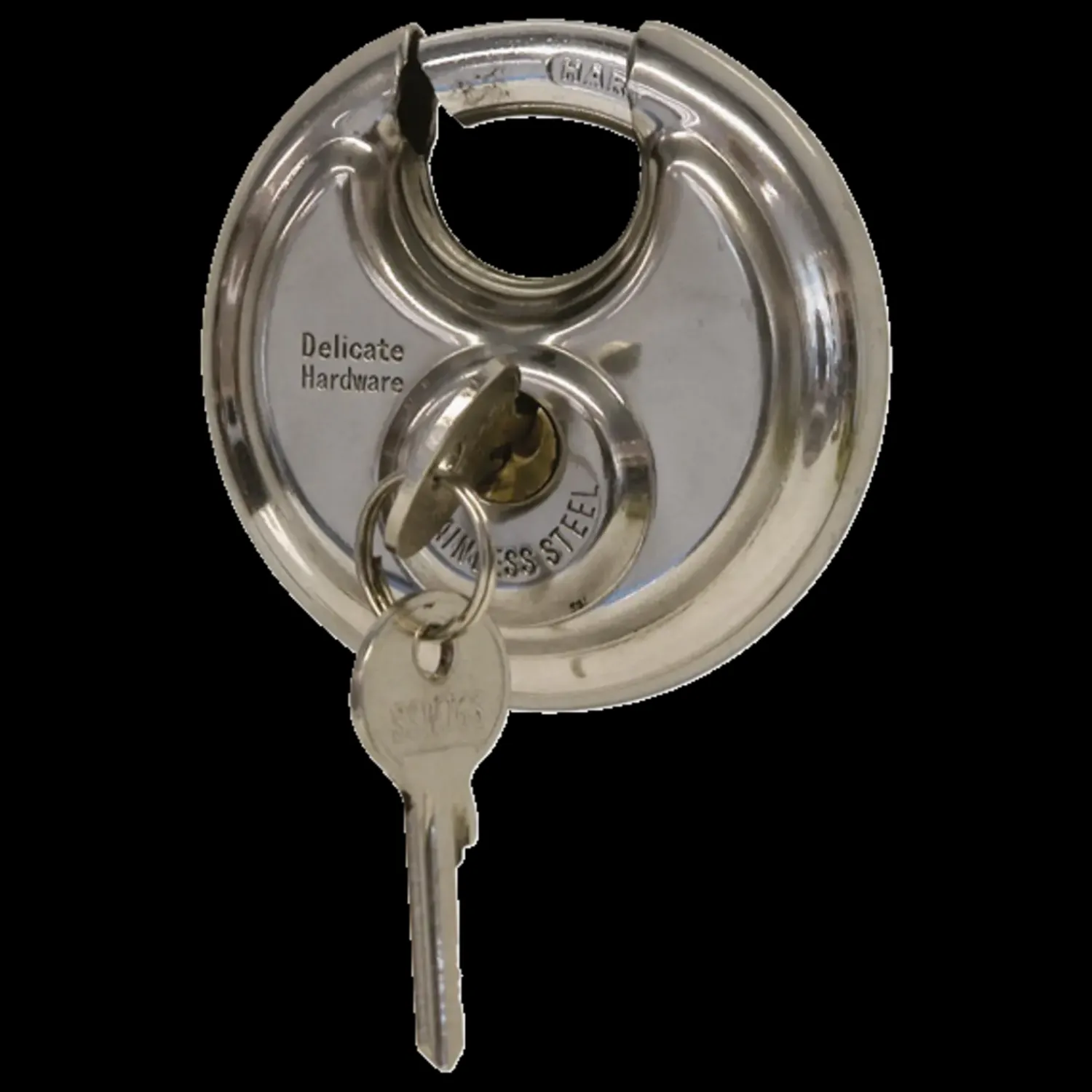 Kraftig og sikker hængelås fremstillet i rustfri stål, der anvendes til aflåsning. Leveres inkl. nøgle.